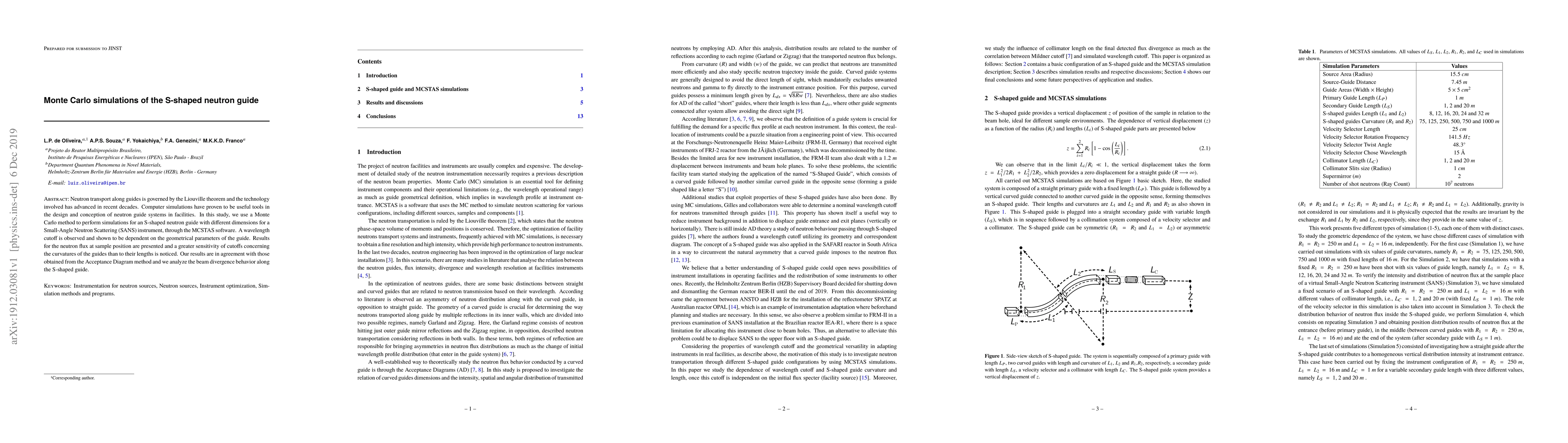 Neutron transport along guides is governed by the Liouville theorem and the technology involved has advanced in recent decades. Computer simulations have proven to be useful tools in the design and conception of neutron guide systems in facilities. In this study, we use a Monte Carlo method to perform simulations for an S-shaped neutron guide with different dimensions for a Small-Angle Neutron Scattering (SANS) instrument, through the MCSTAS software. A wavelength cutoff is observed and shown to be dependent on the geometrical parameters of the guide. Results for the neutron flux at sample position are presented and a greater sensitivity of cutoffs concerning the curvatures of the guides than to their lengths is noticed. Our results are in agreement with those obtained from the Acceptance Diagram method and we analyze the beam divergence behavior along the S-shaped guide.
