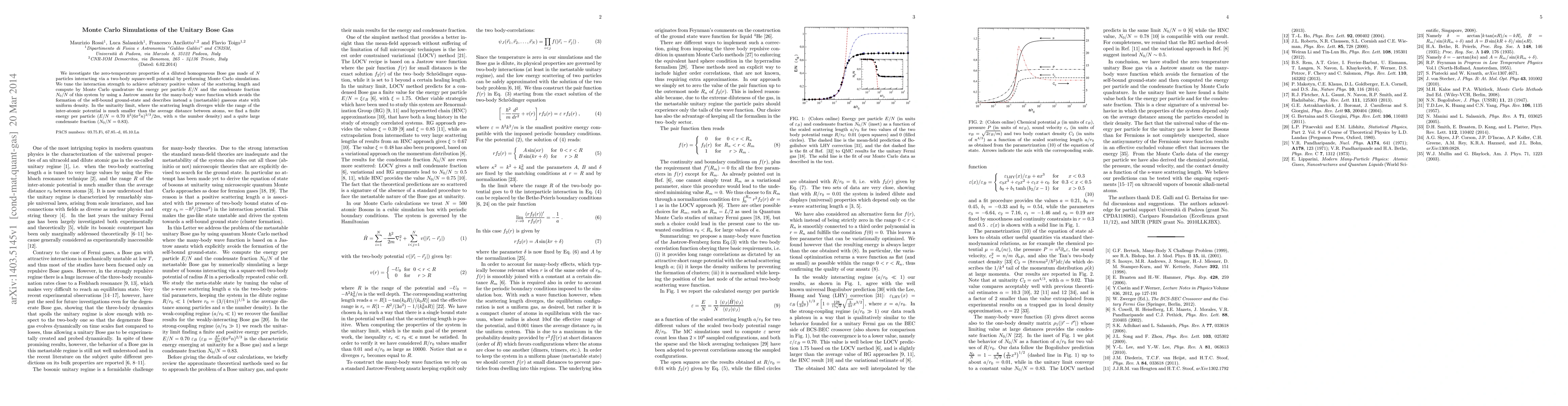This paper uses Monte Carlo simulations to study the zero-temperature properties of a diluted Bose gas with a square-well potential, focusing on the unitarity limit where the scattering length diverges. It finds a finite energy per particle and a large condensate fraction, indicating a stable gaseous state.