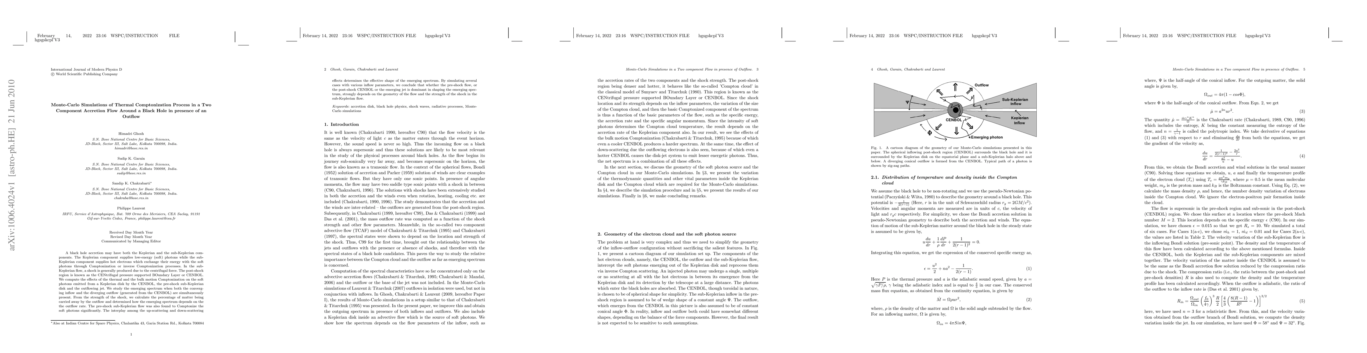 A black hole accretion may have both the Keplerian and the sub-Keplerian component. In the so-called Chakrabarti-Titarchuk scenario, the Keplerian component supplies low energy (soft) photons while the sub-Keplerian component supplies hot electrons which exchange their energy with the soft photons through Comptonization or inverse Comptonization processes. In the sub-Keplerian component, a shock is generally produced due to the centrifugal force. The postshock region is known as the CENtrifugal pressure-supported BOundary Layer (CENBOL). In this paper, we compute the effects of the thermal and the bulk motion Comptonization on the soft photons emitted from a Keplerian disk by the CENBOL, the preshock sub-Keplerian disk and the outflowing jet. We study the emerging spectrum when the converging inflow and the diverging outflow (generated from the CENBOL) are simultaneously present. From the strength of the shock, we calculate the percentage of matter being carried away by the outflow and determine how the emerging spectrum depends on the outflow rate. The preshock sub-Keplerian flow is also found to Comptonize the soft photons significantly. The interplay between the up-scattering and down-scattering effects determines the effective shape of the emerging spectrum. By simulating several cases with various inflow parameters, we conclude that whether the preshock flow, or the postshock CENBOL or the emerging jet is dominant in shaping the emerging spectrum depends strongly on the geometry of the flow and the strength of the shock in the sub-Keplerian flow.