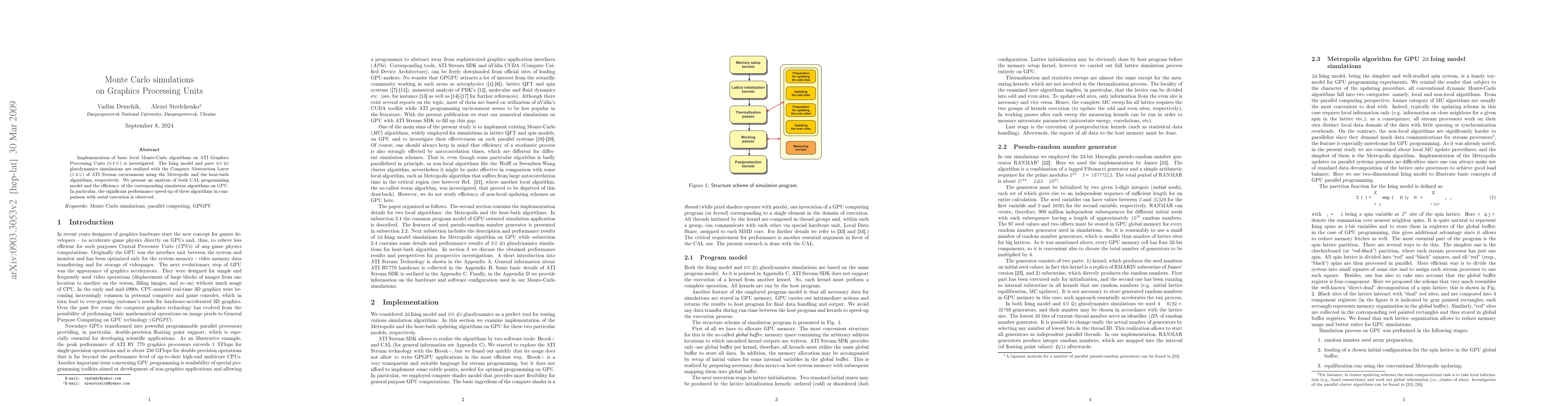 This paper investigates the implementation of Monte Carlo algorithms for the Ising model and SU(2) gluodynamics on ATI GPUs using the Compute Abstraction Layer (CAL). It demonstrates significant performance improvements over serial execution, highlighting the efficiency of GPU-based simulations.