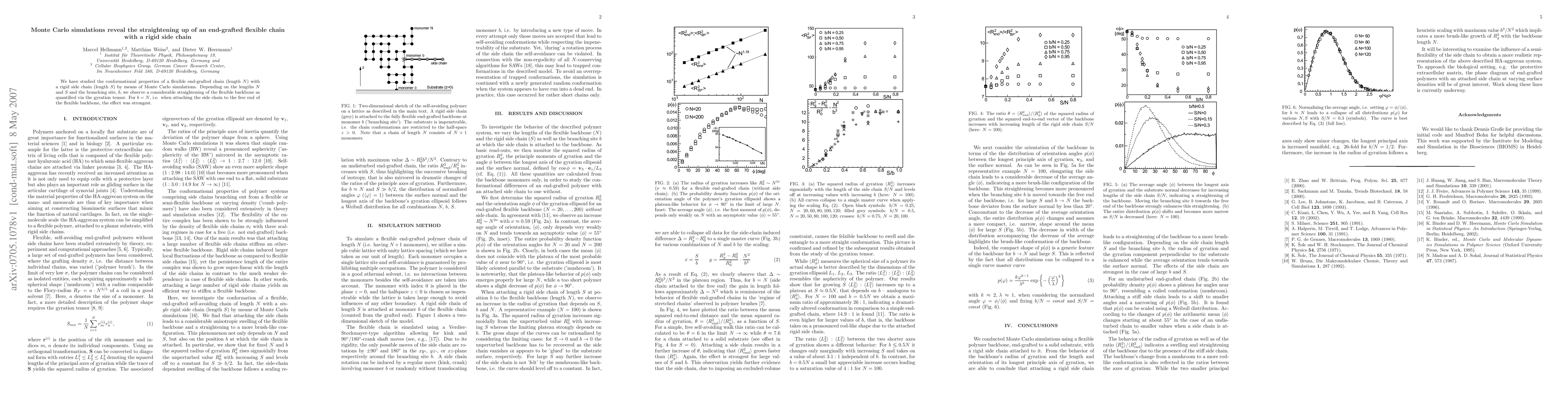 We have studied the conformational properties of a flexible end-grafted chain (length $N$) with a rigid side chain (length $S$) by means of Monte Carlo simulations. Depending on the lengths $N$ and $S$ and the branching site, $b$, we observe a considerable straightening of the flexible backbone as quantified via the gyration tensor. For $b=N$, i.e. when attaching the side chain to the free end of the flexible backbone, the effect was strongest.