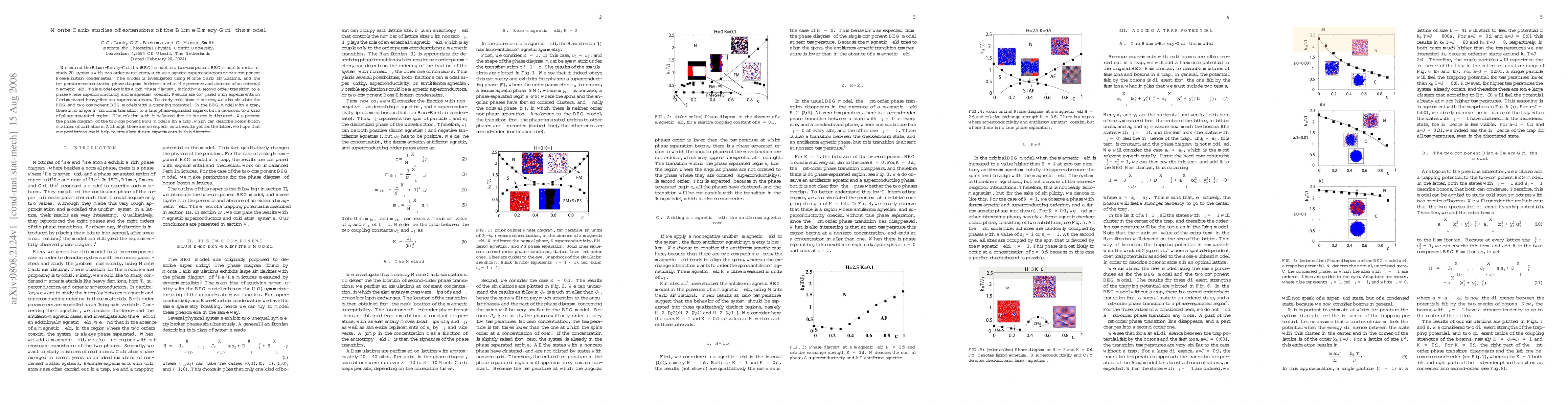We extend the Blume-Emery-Griffiths (BEG) model to a two-component BEG model in order to study 2D systems with two order parameters, such as magnetic superconductors or two-component Bose-Einstein condensates. The model is investigated using Monte Carlo simulations, and the temperature-concentration phase diagram is determined in the presence and absence of an external magnetic field. This model exhibits a rich phase diagram, including a second-order transition to a phase where superconductivity and magnetism coexist. Results are compared with experiments on Cerium-based heavy-fermion superconductors. To study cold atom mixtures, we also simulate the BEG and two-component BEG models with a trapping potential. In the BEG model with a trap, there is no longer a first order transition to a true phase-separated regime, but a crossover to a kind of phase-separated region. The relation with imbalanced fermi-mixtures is discussed. We present the phase diagram of the two-component BEG model with a trap, which can describe boson-boson mixtures of cold atoms. Although there are no experimental results yet for the latter, we hope that our predictions could help to stimulate future experiments in this direction.