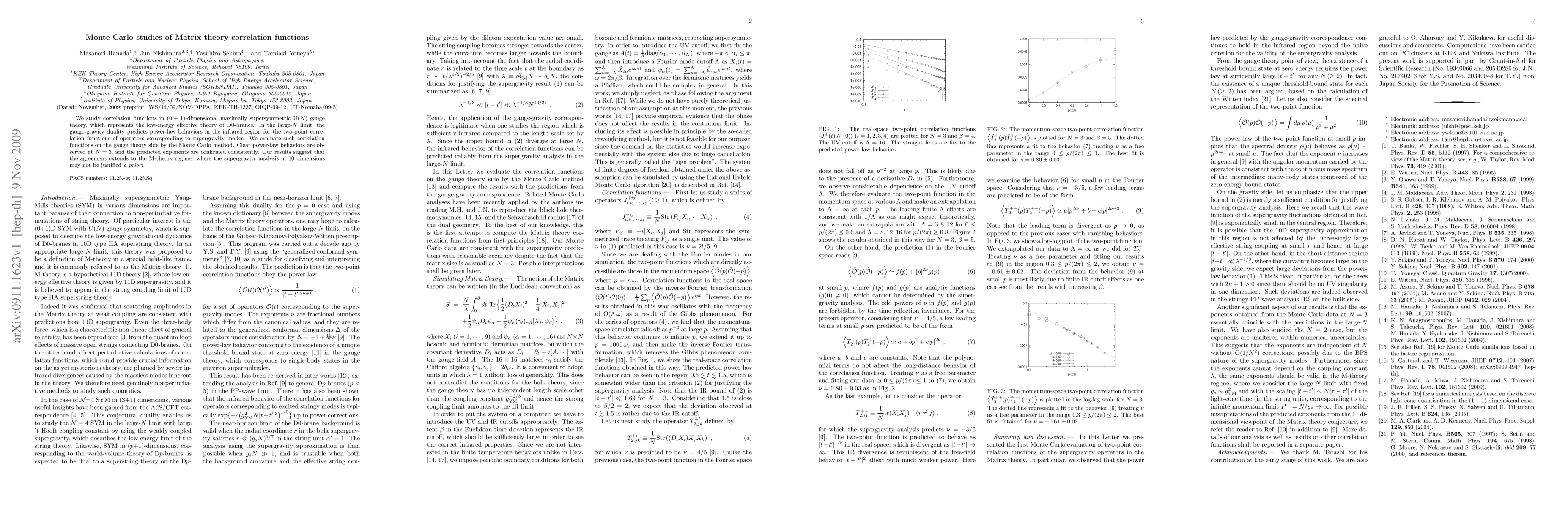 This paper uses Monte Carlo studies to evaluate correlation functions in (0+1)-dimensional maximally supersymmetric U(N) gauge theory, confirming predicted power-law behaviors in the infrared region. The results show consistency with the gauge-gravity duality, suggesting the agreement extends to the M-theory regime.