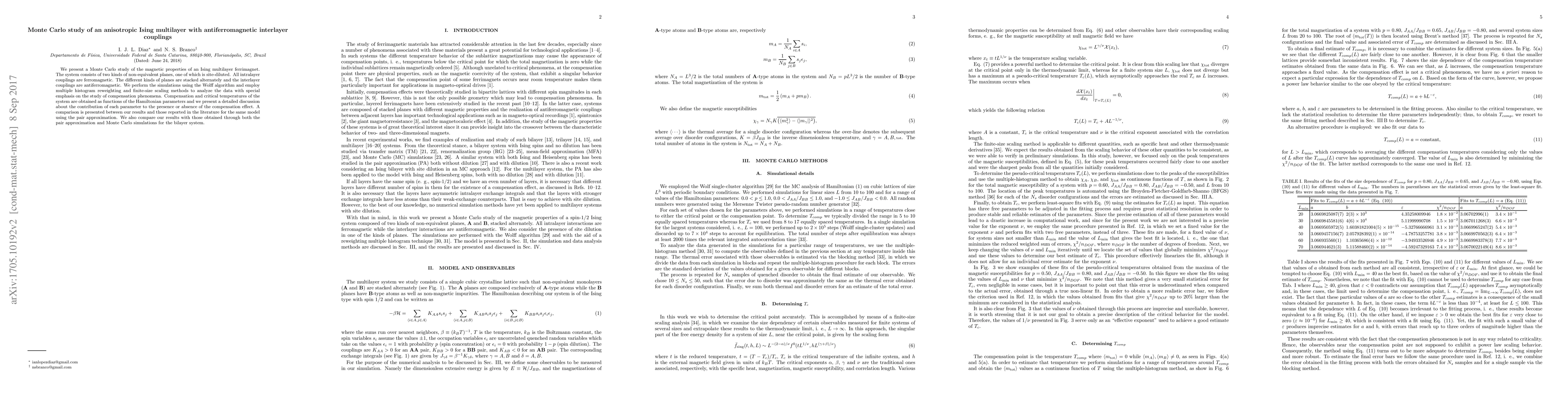We present a Monte Carlo study of the magnetic properties of an Ising multilayer ferrimagnet. The system consists of two kinds of non-equivalent planes, one of which is site-diluted. All intralayer couplings are ferromagnetic. The different kinds of planes are stacked alternately and the interlayer couplings are antiferromagnetic. We perform the simulations using the Wolff algorithm and employ multiple histogram reweighting and finite-size scaling methods to analyze the data with special emphasis on the study of compensation phenomena. Compensation and critical temperatures of the system are obtained as functions of the Hamiltonian parameters and we present a detailed discussion about the contribution of each parameter to the presence or absence of the compensation effect. A comparison is presented between our results and those reported in the literature for the same model using the pair approximation. We also compare our results with those obtained through both the pair approximation and Monte Carlo simulations for the bilayer system.