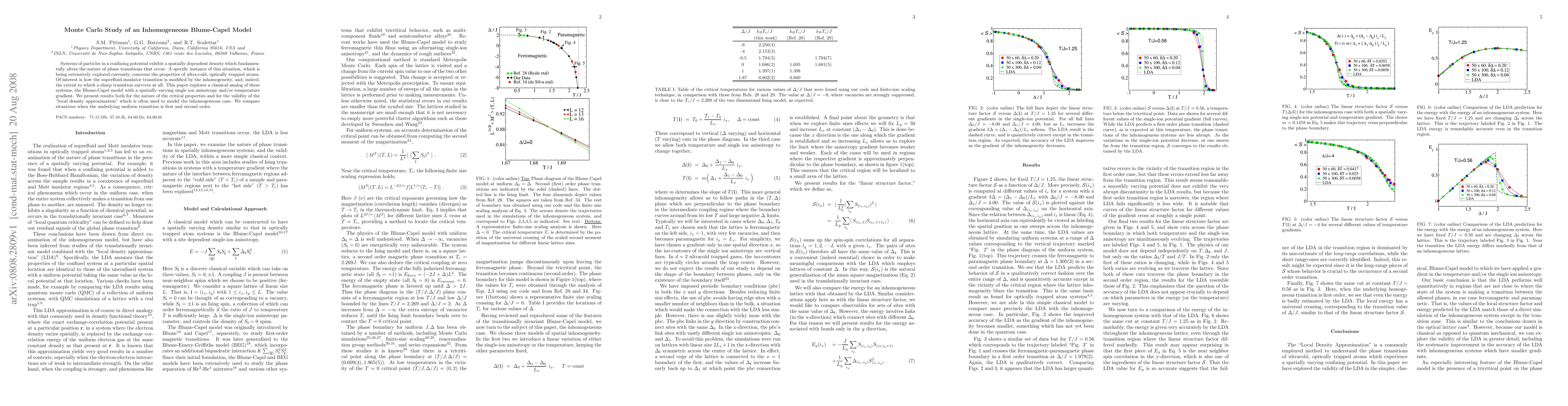 The paper presents a detailed Monte Carlo study of an inhomogeneous Blume-Capel model, comparing LDA predictions with direct simulations and analyzing critical properties and transition types.