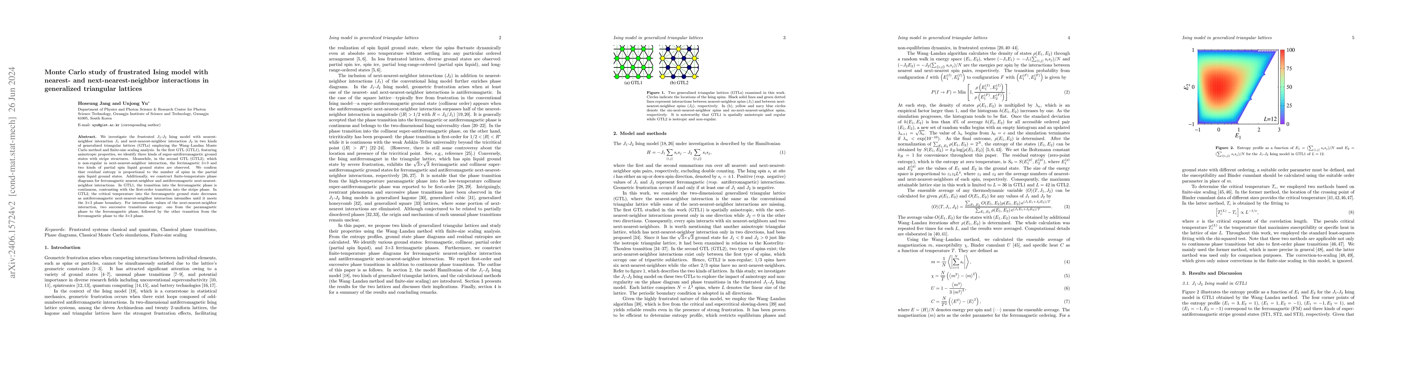This study explores the frustrated $J_1$-$J_2$ Ising model in generalized triangular lattices using Monte Carlo methods, revealing distinct ground states and phase transitions in two lattice types, with GTL1 showing super-antiferromagnetic stripes and GTL2 displaying ferrimagnetic and partial spin liquid states.