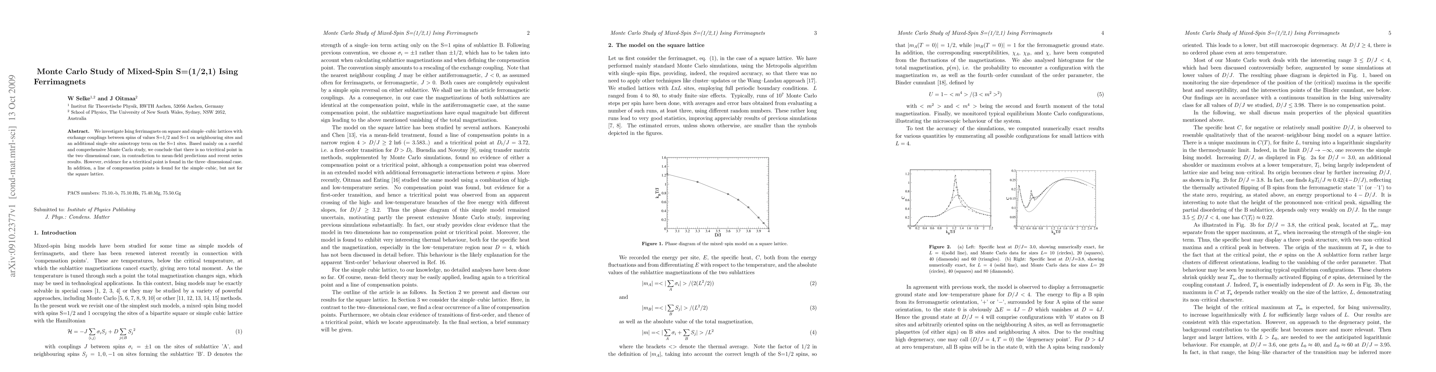Researchers studied Ising ferrimagnets on 2D and 3D lattices with mixed spins S=1/2 and S=1, finding no tricritical point in 2D but evidence of one in 3D. A line of compensation points was also found in the 3D case but not in 2D.