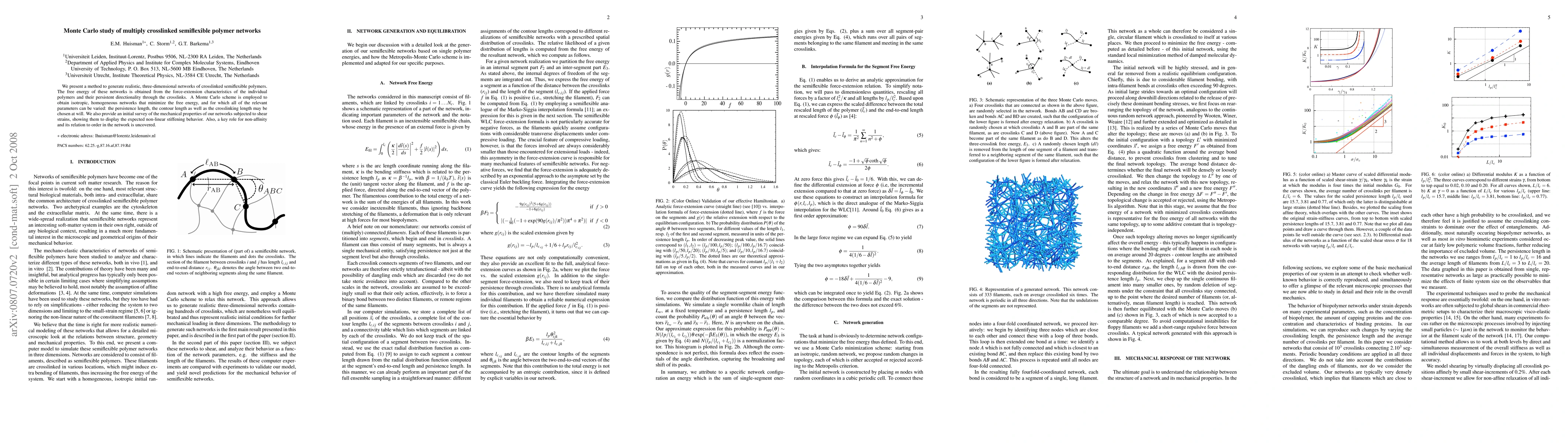 This paper presents a Monte Carlo method for generating three-dimensional networks of crosslinked semiflexible polymers, optimizing their free energy based on polymer force-extension characteristics. The study reveals non-linear stiffening behavior under shear and highlights the importance of non-affinity in network order.