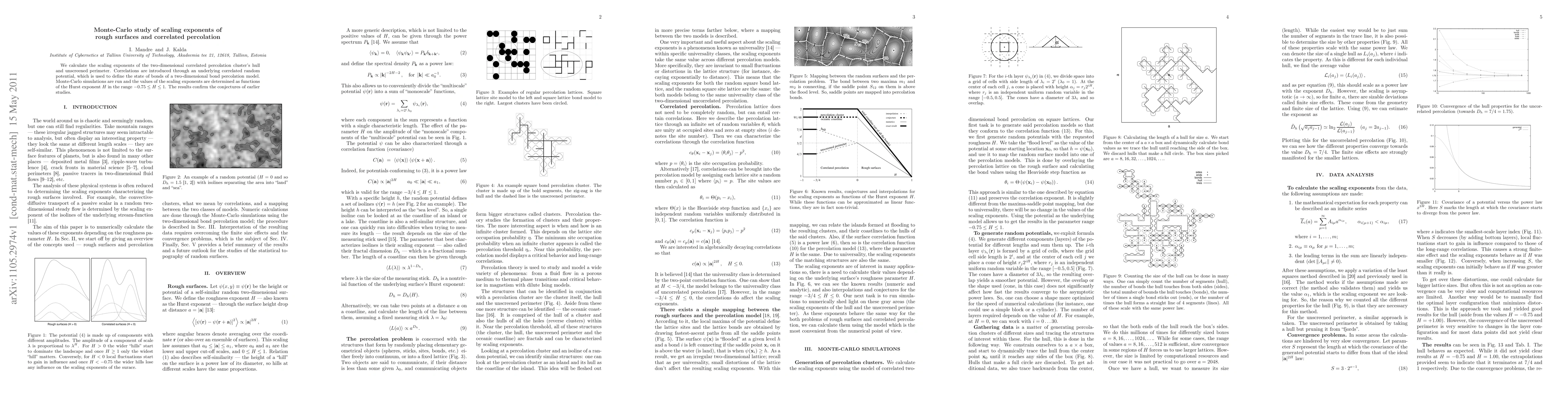 Researchers used Monte-Carlo simulations to study the scaling exponents of rough surfaces and correlated percolation, confirming earlier findings in a range of Hurst exponent values from -0.75 to 1.