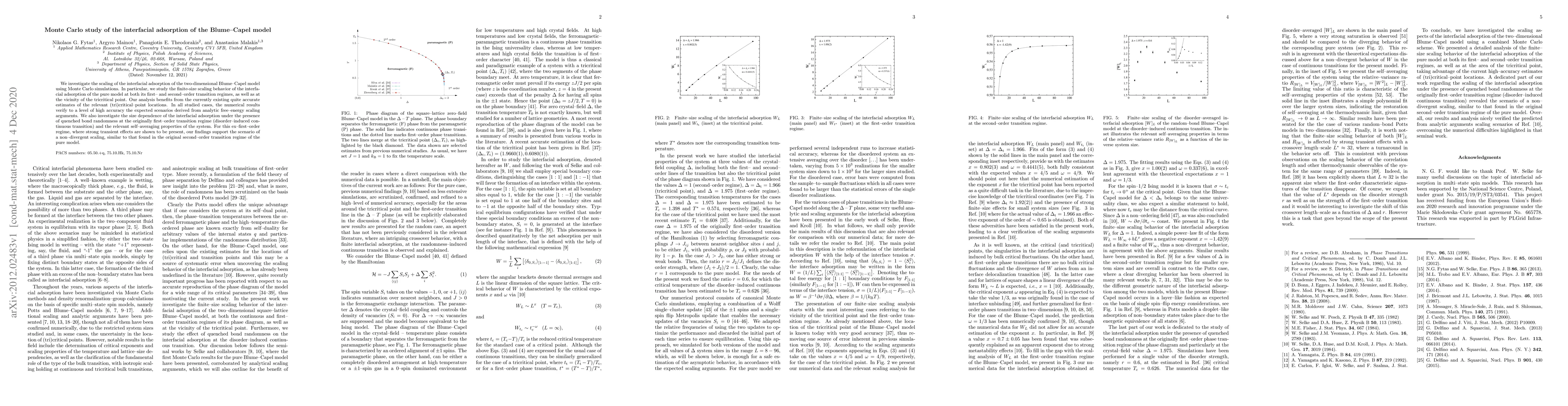 This Monte Carlo study examines the interfacial adsorption of the Blume-Capel model in 2D, confirming theoretical scaling scenarios at first- and second-order transitions and near the tricritical point. It also explores bond randomness impacts, finding non-divergent scaling similar to second-order transitions, even after transient effects.