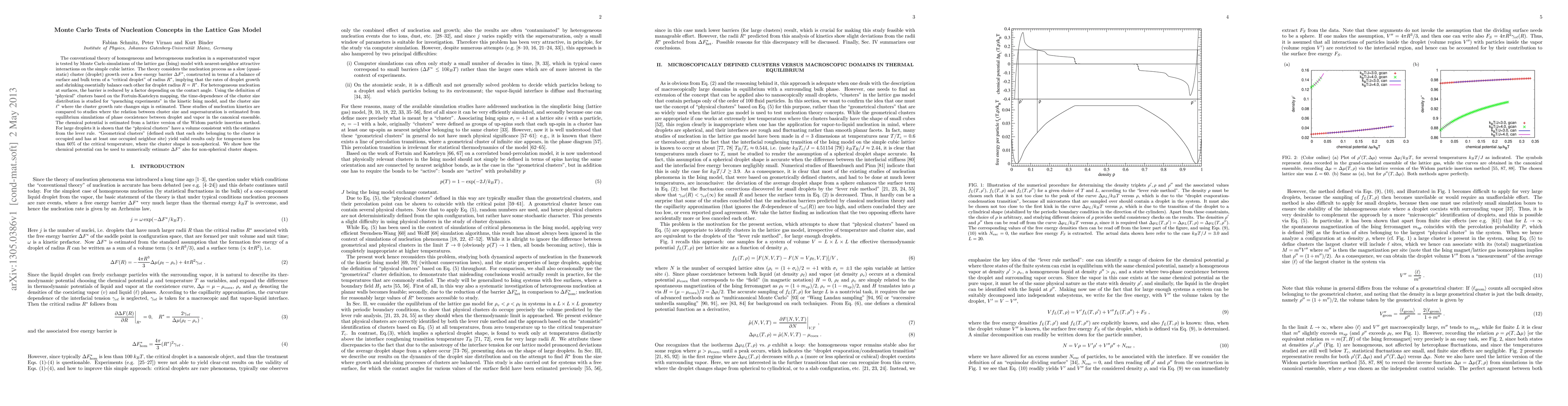 This study uses Monte Carlo simulations to test nucleation concepts in a lattice gas model, comparing theoretical predictions with experimental-like results and shedding light on the role of surface contact angles and cluster shapes in heterogeneous nucleation.