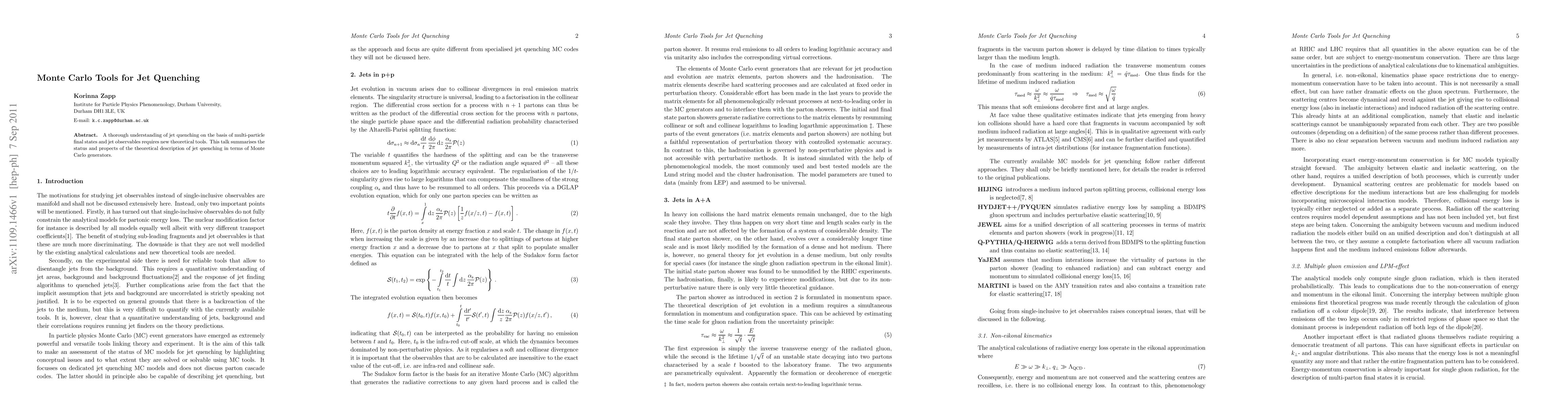 A thorough understanding of jet quenching on the basis of multi-particle final states and jet observables requires new theoretical tools. This talk summarises the status and propects of the theoretical description of jet quenching in terms of Monte Carlo generators.