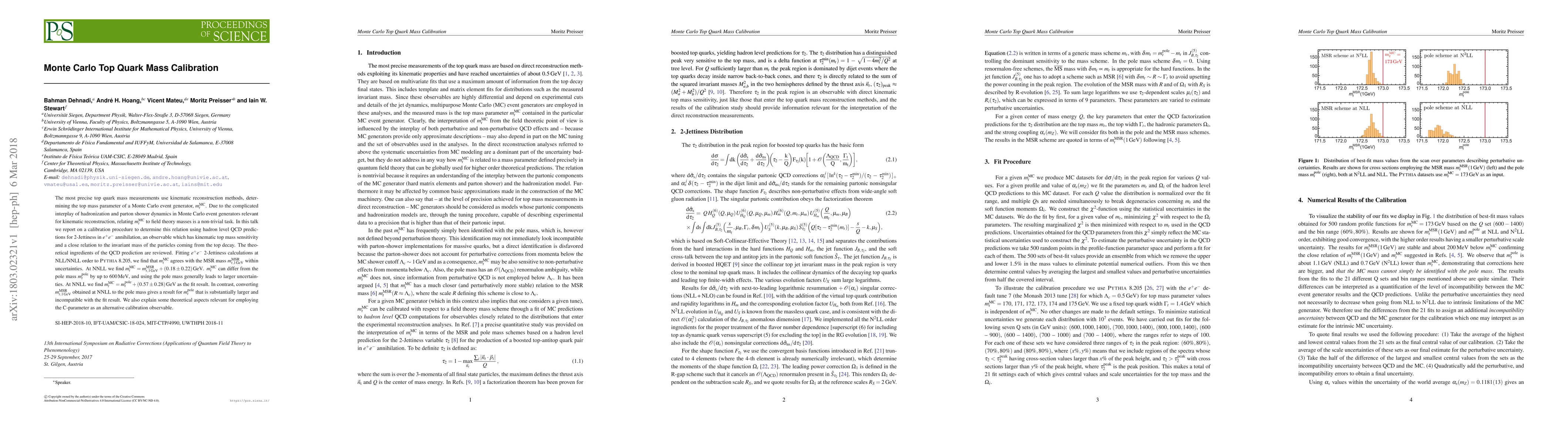 The most precise top quark mass measurements use kinematic reconstruction methods, determining the top mass parameter of a Monte Carlo event generator, $m_t^{\rm MC}$. Due to the complicated interplay of hadronization and parton shower dynamics in Monte Carlo event generators relevant for kinematic reconstruction, relating $m_t^{\rm MC}$ to field theory masses is a non-trivial task. In this talk we report on a calibration procedure to determine this relation using hadron level QCD predictions for 2-Jettiness in $e^+e^-$ annihilation, an observable which has kinematic top mass sensitivity and a close relation to the invariant mass of the particles coming from the top decay. The theoretical ingredients of the QCD prediction are reviewed. Fitting $e^+e^-$ 2-Jettiness calculations at NLL/NNLL order to PYTHIA 8.205, we find that $m_t^{\rm MC}$ agrees with the MSR mass $m_{t,1\,{\rm GeV}}^{\rm MSR}$ within uncertainties. At NNLL we find $m_t^{\rm MC} = m_{t,1\,{\rm GeV}}^{\rm MSR} + (0.18 \pm 0.22)\,{\rm GeV}$. $m_t^{\rm MC}$ can differ from the pole mass $m_t^{\rm pole}$ by up to $600\,{\rm MeV}$, and using the pole mass generally leads to larger uncertainties. At NNLL we find $m_t^{\rm MC} = m_t^{\rm pole} + (0.57 \pm 0.28)\,{\rm GeV}$ as the fit result. In contrast, converting $m_{t,1\,{\rm GeV}}^{\rm MSR}$ obtained at NNLL to the pole mass gives a result for $m_t^{\rm pole}$ that is substantially larger and incompatible with the fit result. We also explain some theoretical aspects relevant for employing the C-parameter as an alternative calibration observable.
