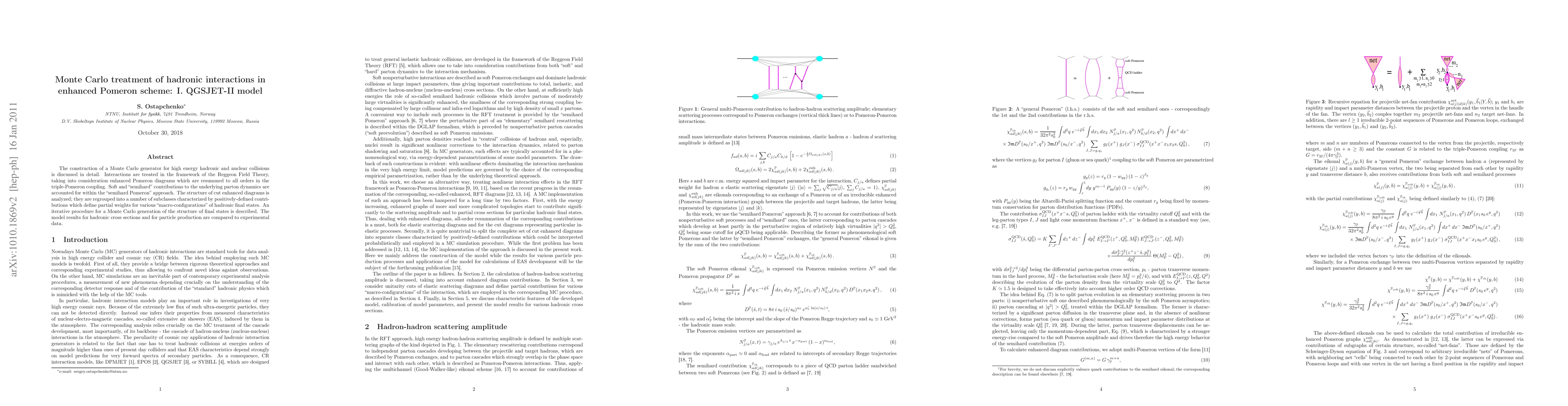 This paper details the development of a Monte Carlo generator for high-energy hadronic and nuclear collisions, utilizing the QGSJET-II model within the enhanced Pomeron framework of Reggeon Field Theory. The model incorporates resummed triple-Pomeron couplings and semihard Pomeron contributions, and compares its predictions for cross sections and particle production to experimental data.