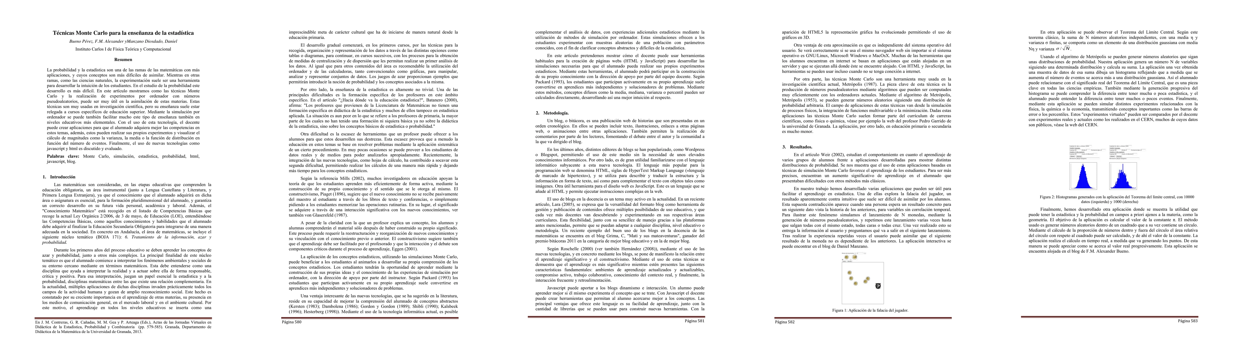 Probability Theory and Statistics are two of the most useful mathematical fields, and also two of the most difficult to learn. In other science fields, as Physics, experimentation is an useful tool to develop students intuition, but the application of this tool to Statistics is much more difficult. In this paper we show how Monte Carlo techniques can be used to perform numerical experiments, by the use of pseudorandom numbers, and how these experiments can help to the understanding of Statistics and Physics. Monte Carlo techniques are broadly used in scientific research, but they are learnt usually in very specific curses of higher education. By the use of computer simulation these techniques can also be taught at elementary school and they can help to understand and visualise concepts as variance, mean or a probability distribution function. Finally, the use of new technologies, as Javascript and HTML is discussed.