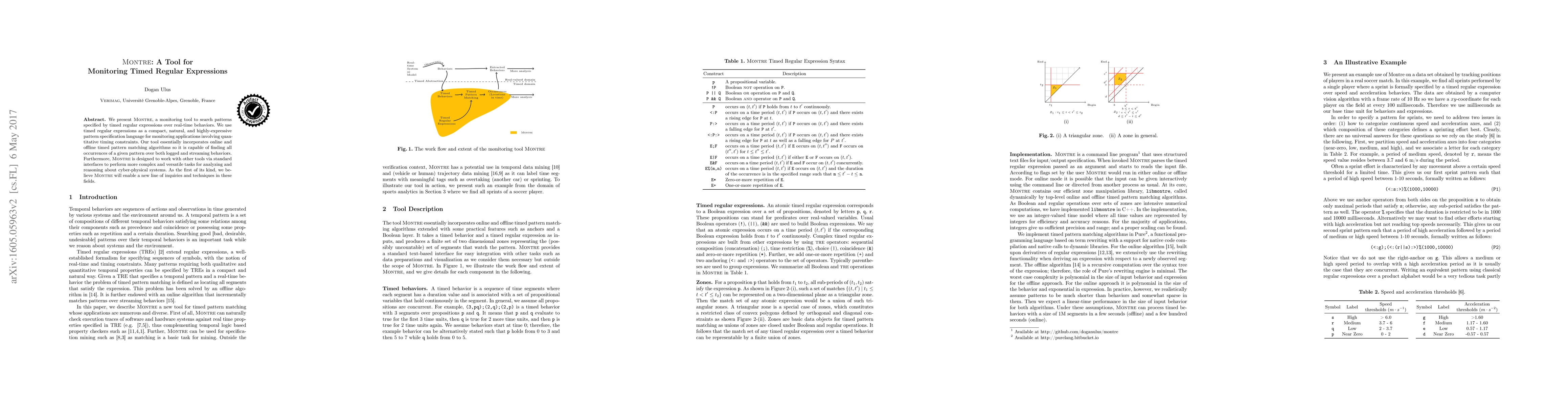 Montre is a novel monitoring tool designed to search for patterns specified by timed regular expressions in real-time behaviors, supporting both offline and online pattern matching. It aims to facilitate the analysis and reasoning of cyber-physical systems with quantitative timing constraints.