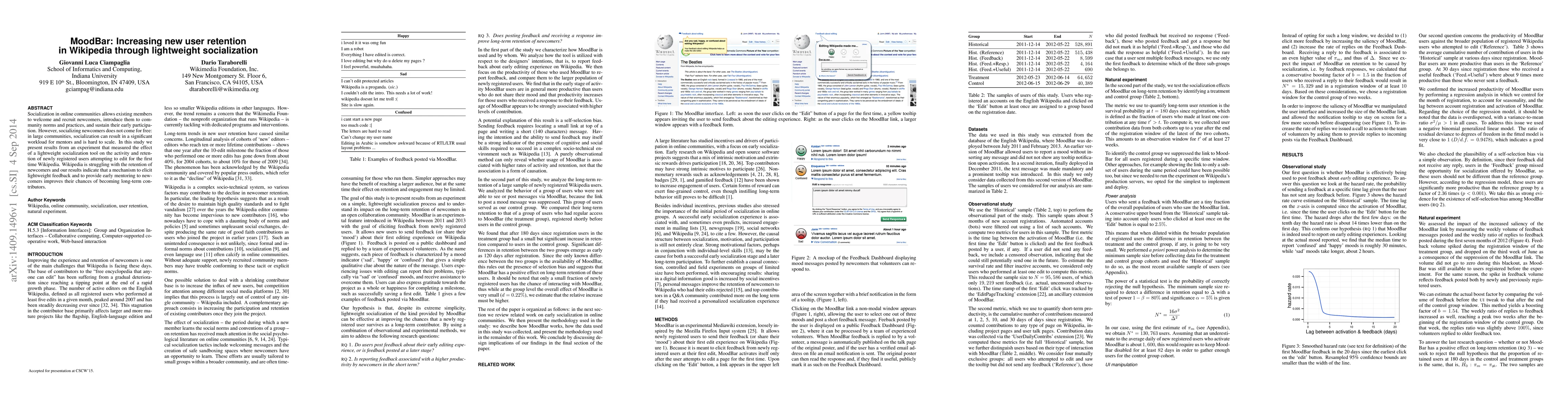Socialization in online communities allows existing members to welcome and recruit newcomers, introduce them to community norms and practices, and sustain their early participation. However, socializing newcomers does not come for free: in large communities, socialization can result in a significant workload for mentors and is hard to scale. In this study we present results from an experiment that measured the effect of a lightweight socialization tool on the activity and retention of newly registered users attempting to edit for the first time Wikipedia. Wikipedia is struggling with the retention of newcomers and our results indicate that a mechanism to elicit lightweight feedback and to provide early mentoring to newcomers improves their chances of becoming long-term contributors.