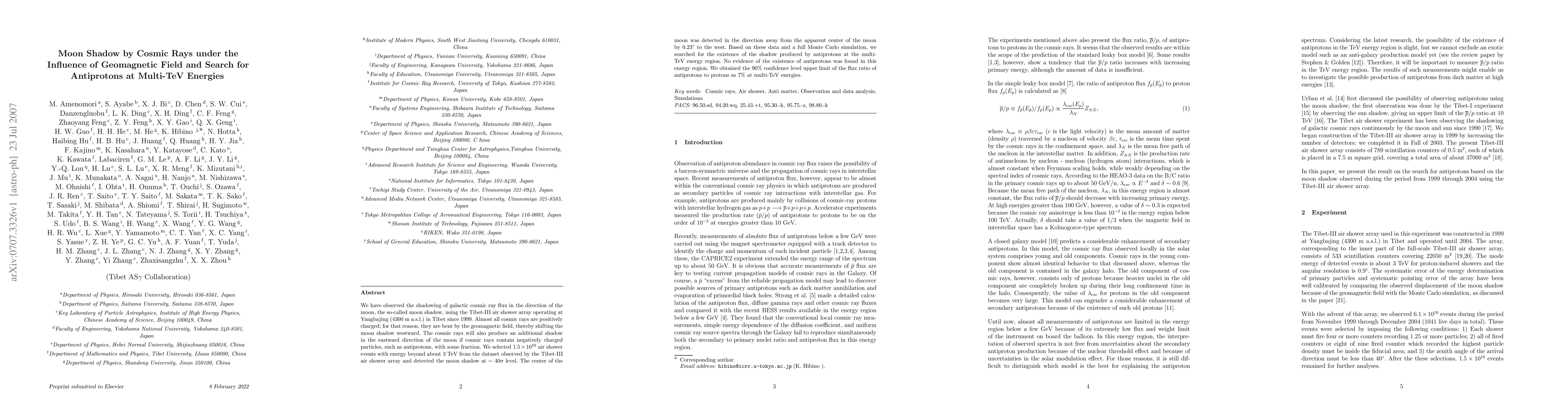We have observed the shadowing of galactic cosmic ray flux in the direction of the moon, the so-called moon shadow, using the Tibet-III air shower array operating at Yangbajing (4300 m a.s.l.) in Tibet since 1999. Almost all cosmic rays are positively charged; for that reason, they are bent by the geomagnetic field, thereby shifting the moon shadow westward. The cosmic rays will also produce an additional shadow in the eastward direction of the moon if cosmic rays contain negatively charged particles, such as antiprotons, with some fraction. We selected 1.5 x10^{10} air shower events with energy beyond about 3 TeV from the dataset observed by the Tibet-III air shower array and detected the moon shadow at $\sim 40 \sigma$ level. The center of the moon was detected in the direction away from the apparent center of the moon by 0.23$^\circ$ to the west. Based on these data and a full Monte Carlo simulation, we searched for the existence of the shadow produced by antiprotons at the multi-TeV energy region. No evidence of the existence of antiprotons was found in this energy region. We obtained the 90% confidence level upper limit of the flux ratio of antiprotons to protons as 7% at multi-TeV energies.