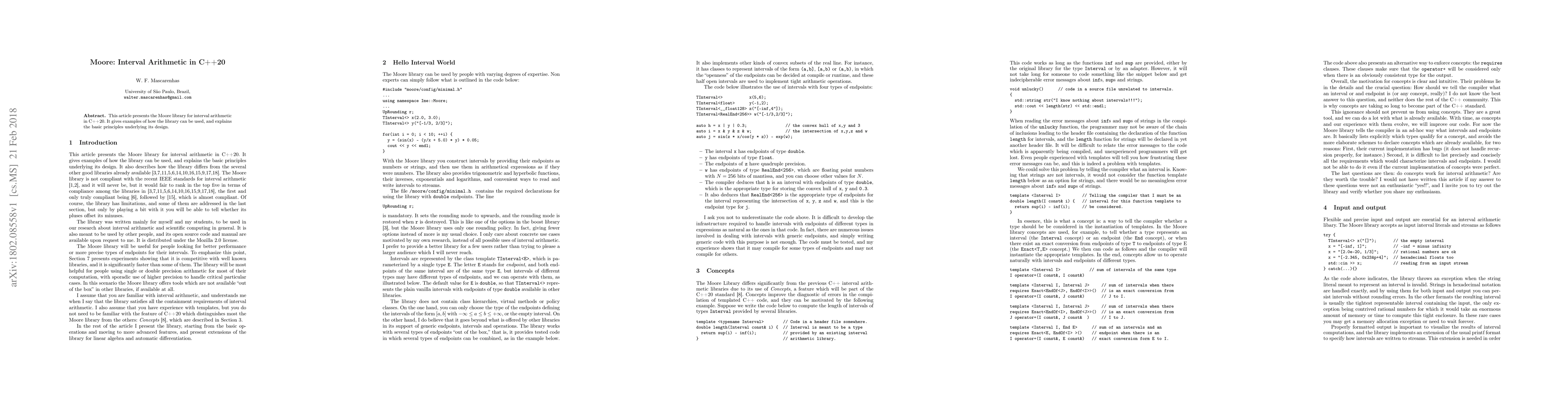 This article presents the Moore library for interval arithmetic in C++20. It gives examples of how the library can be used, and explains the basic principles underlying its design.