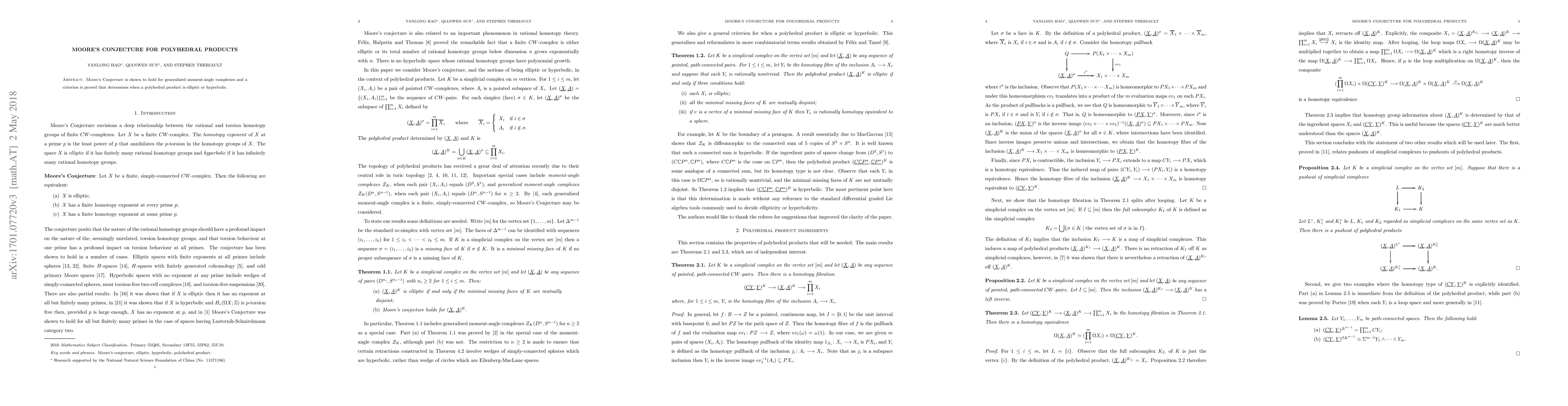 Moore's Conjecture is confirmed for generalized moment-angle complexes, and a new criterion is established to classify polyhedral products as either elliptic or hyperbolic.