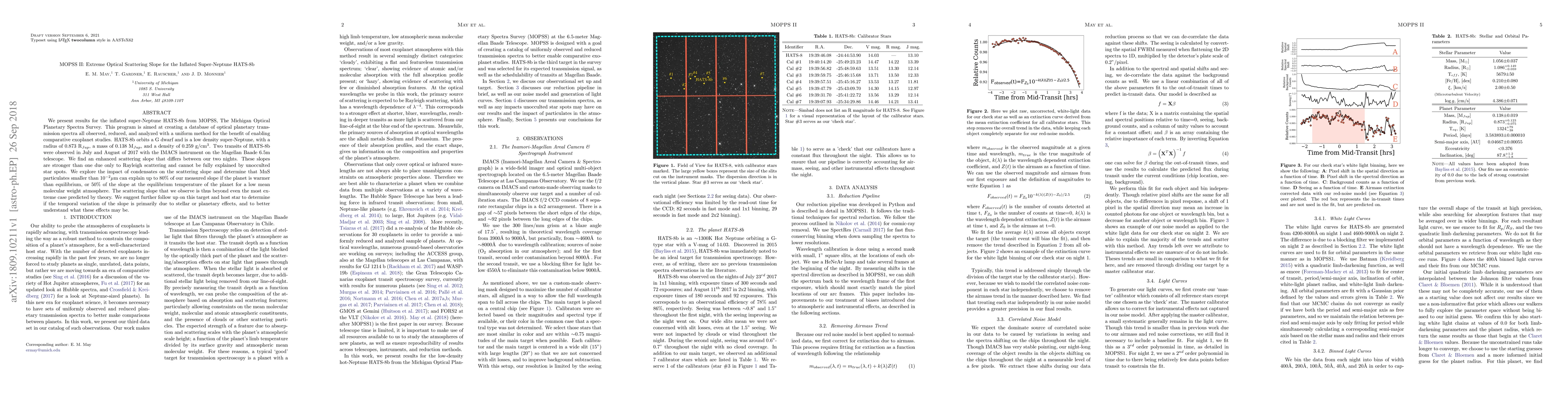 We present results for the inflated super-Neptune HATS-8b from MOPSS, The Michigan Optical Planetary Spectra Survey. This program is aimed at creating a database of optical planetary transmission spectra all observed, reduced, and analyzed with a uniform method for the benefit of enabling comparative exoplanet studies. HATS-8b orbits a G dwarf and is a low density super-Neptune, with a radius of 0.873 R$_{Jup}$, a mass of 0.138 M$_{Jup}$, and a density of 0.259 g/cm$^3$. Two transits of HATS-8b were observed in July and August of 2017 with the IMACS instrument on the Magellan Baade 6.5m telescope. We find an enhanced scattering slope that differs between our two nights. These slopes are stronger than one due only to Rayleigh scattering and cannot be fully explained by unocculted star spots. We explore the impact of condensates on the scattering slope and determine that MnS particulates smaller than 10$^{-2}\mu$m can explain up to 80\% of our measured slope if the planet is warmer than equilibrium, or 50\% of the slope at the equilibrium temperature of the planet for a low mean molecular weight atmosphere. The scattering slope that we observe is thus beyond even the most extreme case predicted by theory. We suggest further follow up on this target and host star to determine if the temporal variation of the slope is primarily due to stellar or planetary effects, and to better understand what these effects may be.