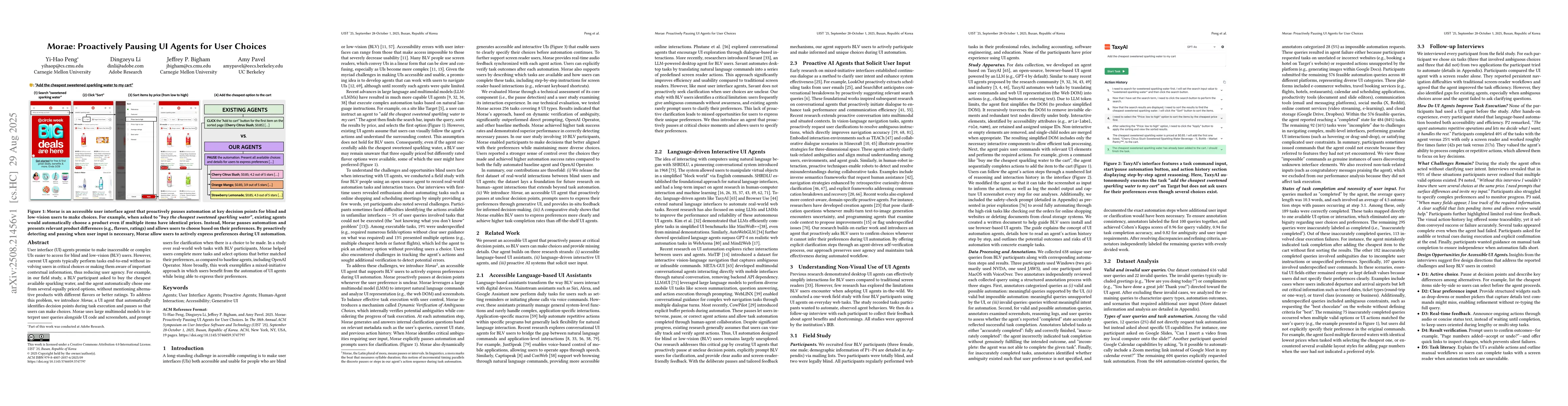 User interface (UI) agents promise to make inaccessible or complex UIs easier to access for blind and low-vision (BLV) users. However, current UI agents typically perform tasks end-to-end without involving users in critical choices or making them aware of important contextual information, thus reducing user agency. For example, in our field study, a BLV participant asked to buy the cheapest available sparkling water, and the agent automatically chose one from several equally priced options, without mentioning alternative products with different flavors or better ratings. To address this problem, we introduce Morae, a UI agent that automatically identifies decision points during task execution and pauses so that users can make choices. Morae uses large multimodal models to interpret user queries alongside UI code and screenshots, and prompt users for clarification when there is a choice to be made. In a study over real-world web tasks with BLV participants, Morae helped users complete more tasks and select options that better matched their preferences, as compared to baseline agents, including OpenAI Operator. More broadly, this work exemplifies a mixed-initiative approach in which users benefit from the automation of UI agents while being able to express their preferences.