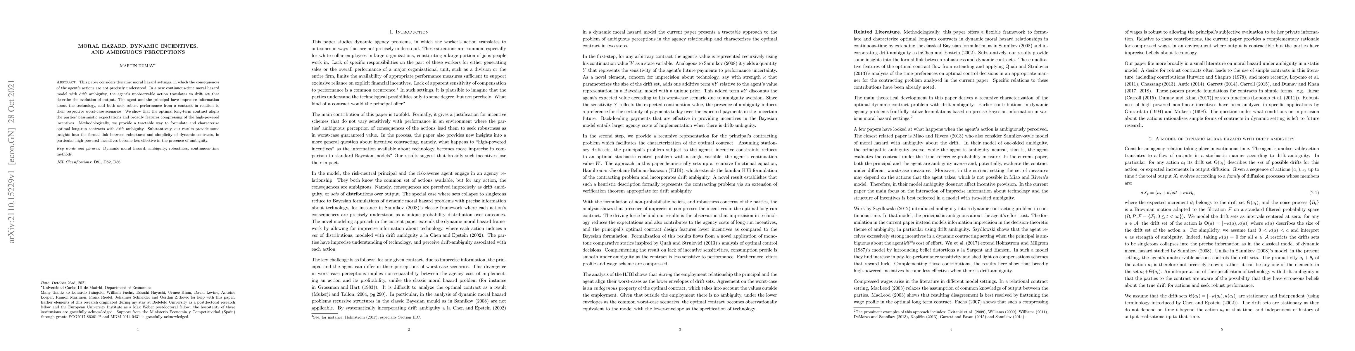 This paper develops a continuous-time moral hazard model with drift ambiguity, showing that optimal long-term contracts align the parties' pessimistic expectations and reduce high-powered incentives. It provides a methodological framework for formulating optimal contracts under ambiguity and highlights the formal link between robustness and simplicity in dynamic contracts.