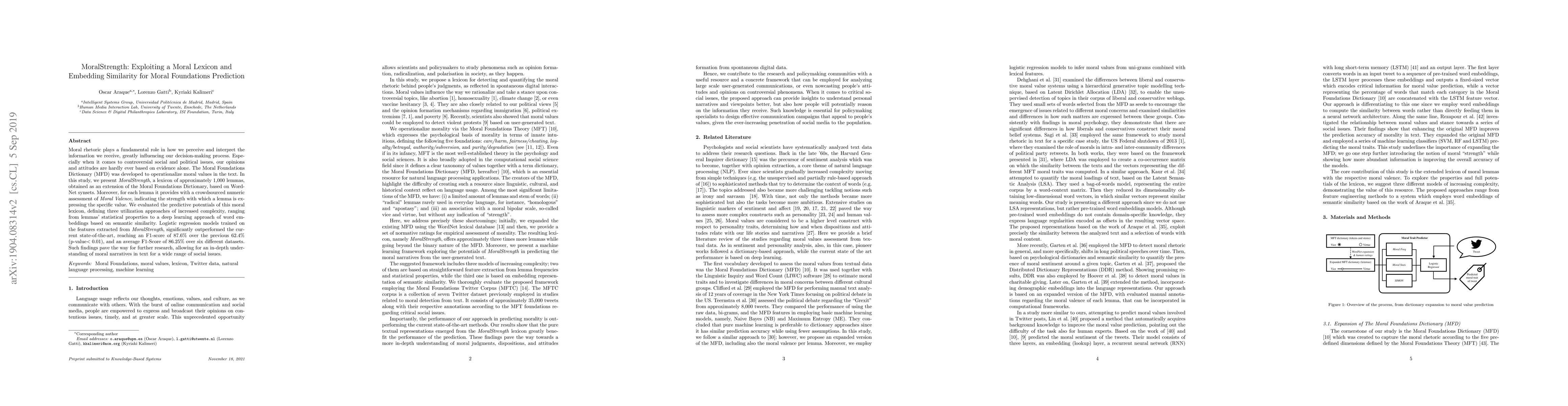 MoralStrength extends the MFD, offering a larger set of lemmas with associated moral valence scores, and demonstrates superior predictive performance compared to existing methods and state-of-the-art approaches.