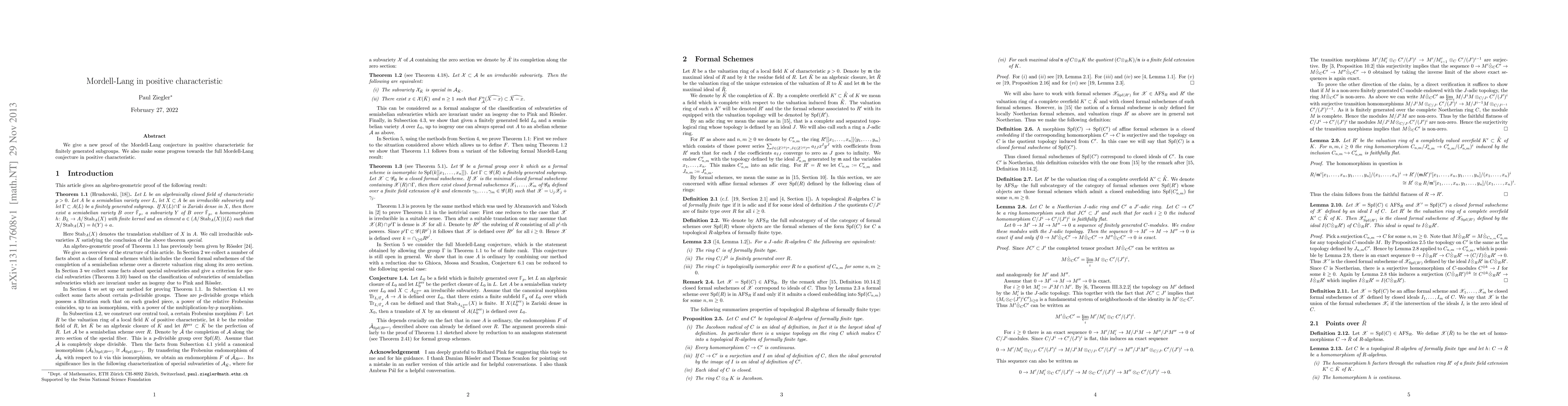 We give a new proof of the Mordell-Lang conjecture in positive characteristic for finitely generated subgroups. We also make some progress towards the full Mordell-Lang conjecture in positive characteristic.
