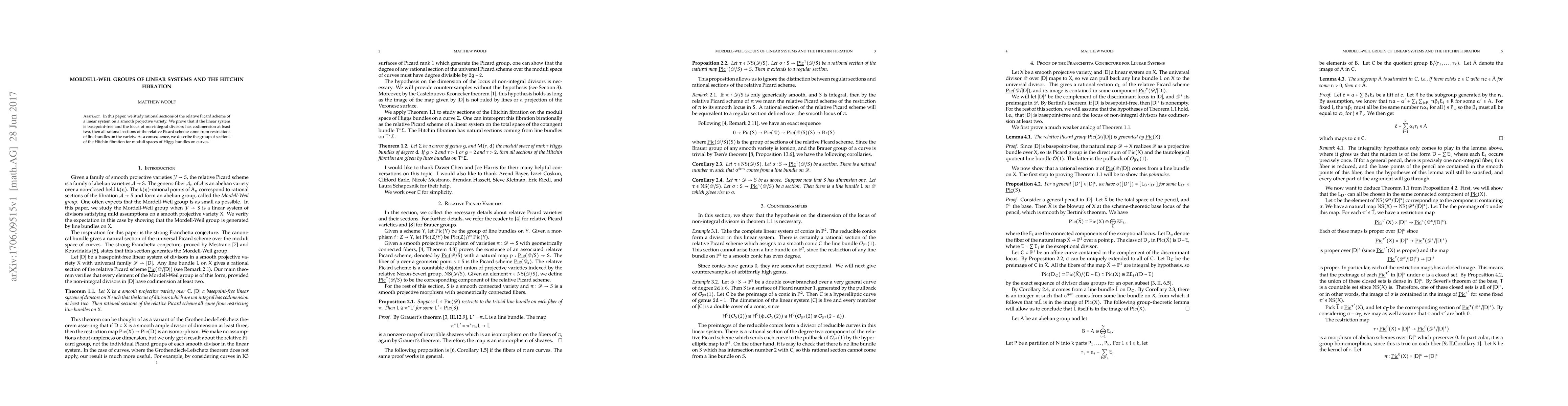 Researchers prove that rational sections of a specific scheme come from restrictions of line bundles on a variety under certain conditions, shedding light on the Hitchin fibration for moduli spaces of Higgs bundles on curves.