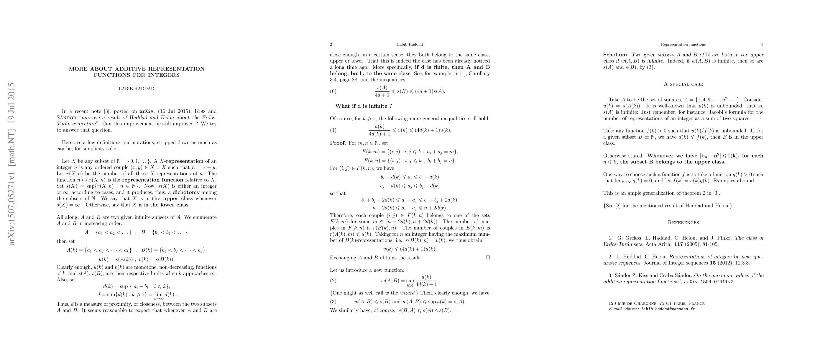 A short comment about a recent note by Kiss and Sandor on the maximum values of additive representation functions.