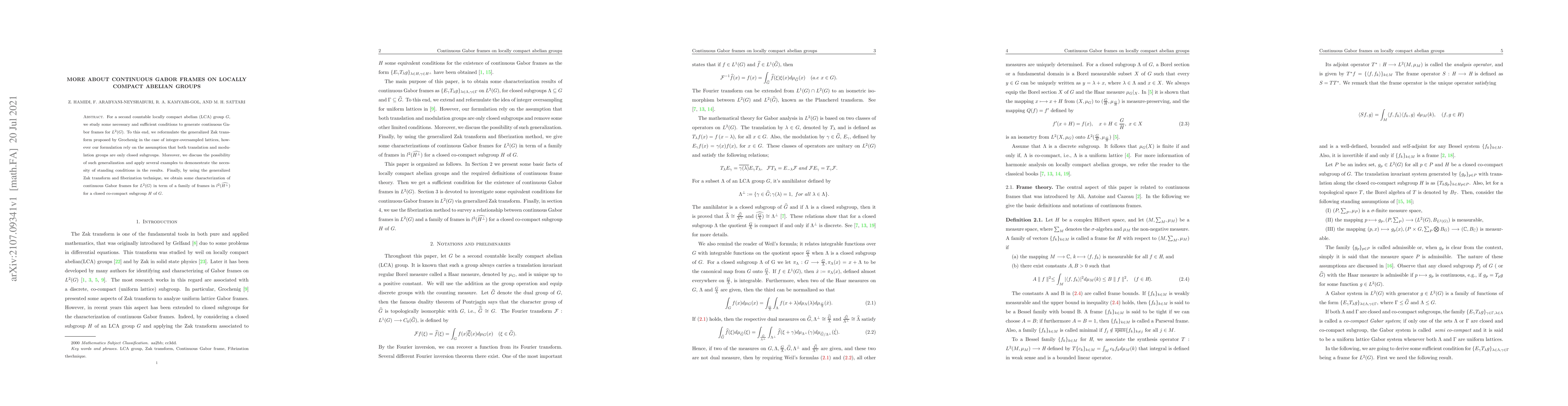 This paper explores conditions for generating continuous Gabor frames in $L^{2}(G)$ for second countable locally compact abelian groups, reformulating Grochenig's generalized Zak transform for integer-oversampled lattices and characterizing these frames using a family of frames in $l^{2}(\widehat{H^{\perp}})$ for a closed co-compact subgroup $H$.