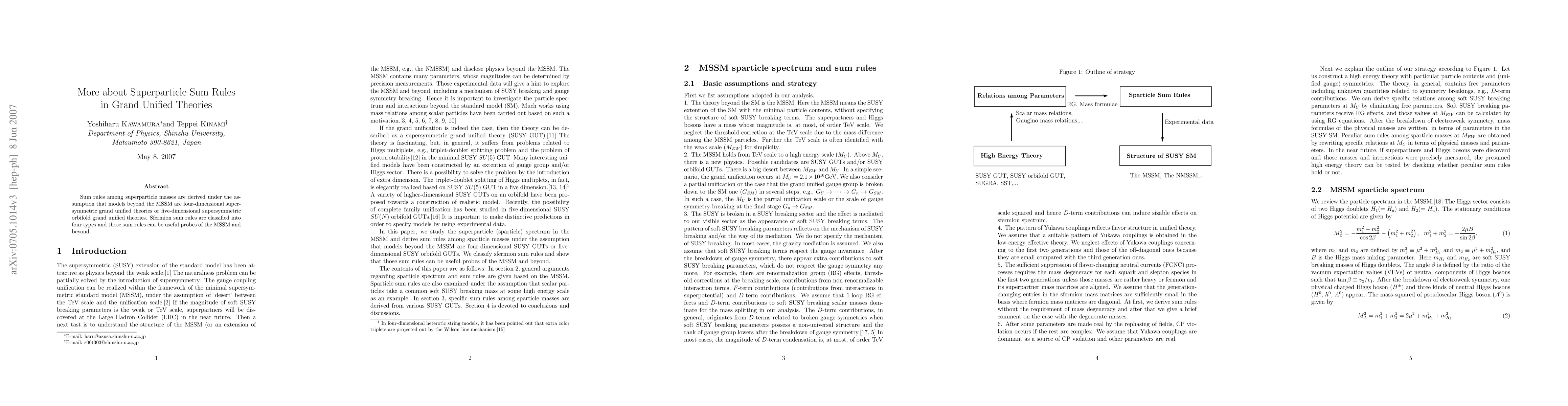 Sum rules among superparticle masses are derived under the assumption that models beyond the MSSM are four-dimensional supersymmetric grand unified theories or five-dimensional supersymmetric orbifold grand unified theories. Sfermion sum rules are classified into four types and those sum rules can be useful probes of the MSSM and beyond.