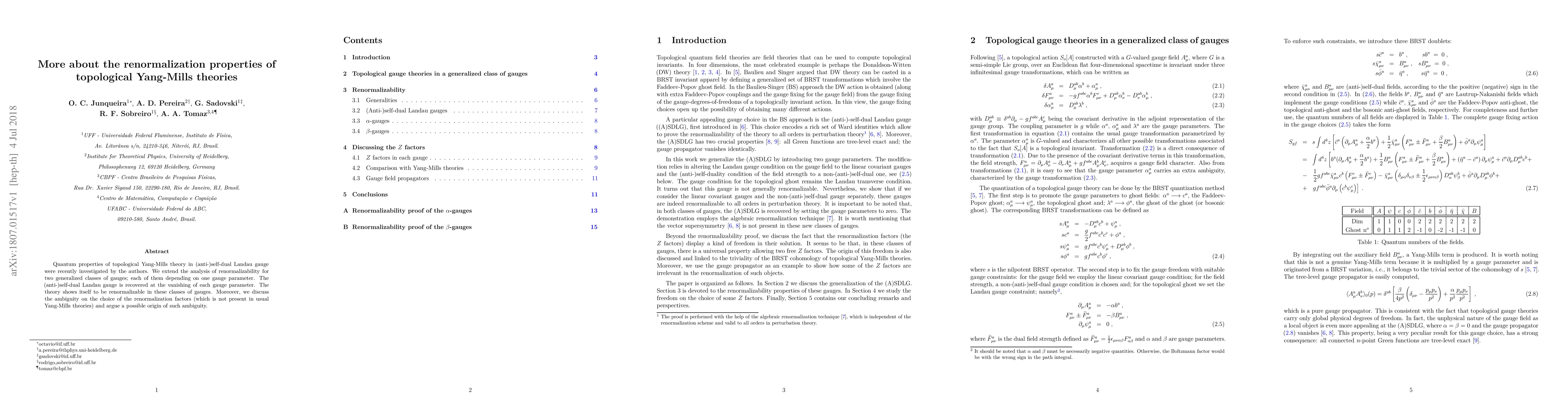This paper extends the analysis of renormalizability in topological Yang-Mills theories for two generalized gauge classes, showing the theory remains renormalizable. It also discusses the unique ambiguity in the choice of renormalization factors in these gauges, proposing a possible origin for this discrepancy.