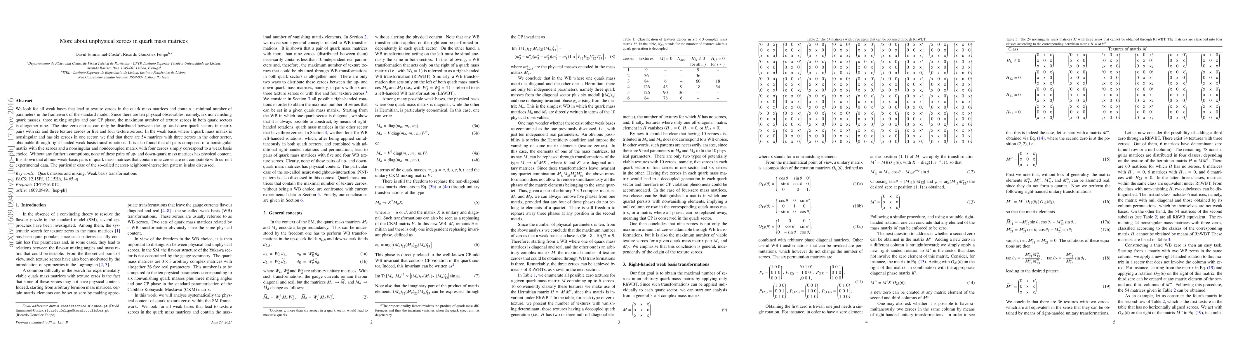 This paper investigates the distribution of texture zeroes in quark mass matrices within the standard model, finding that while nine zeroes can theoretically exist, none of the configurations with nine zeroes are compatible with current experimental data. It concludes that specific weak basis choices lead to unphysical zeroes in quark mass matrices.