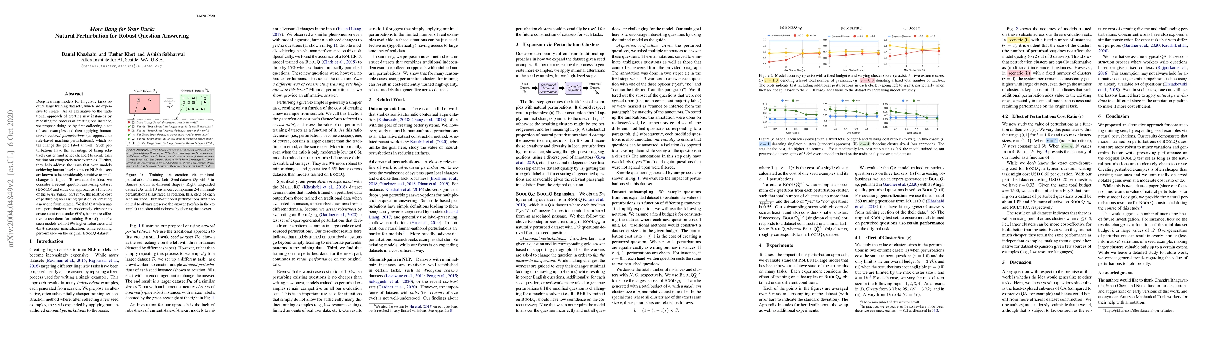 While recent models have achieved human-level scores on many NLP datasets, we observe that they are considerably sensitive to small changes in input. As an alternative to the standard approach of addressing this issue by constructing training sets of completely new examples, we propose doing so via minimal perturbation of examples. Specifically, our approach involves first collecting a set of seed examples and then applying human-driven natural perturbations (as opposed to rule-based machine perturbations), which often change the gold label as well. Local perturbations have the advantage of being relatively easier (and hence cheaper) to create than writing out completely new examples. To evaluate the impact of this phenomenon, we consider a recent question-answering dataset (BoolQ) and study the benefit of our approach as a function of the perturbation cost ratio, the relative cost of perturbing an existing question vs. creating a new one from scratch. We find that when natural perturbations are moderately cheaper to create, it is more effective to train models using them: such models exhibit higher robustness and better generalization, while retaining performance on the original BoolQ dataset.