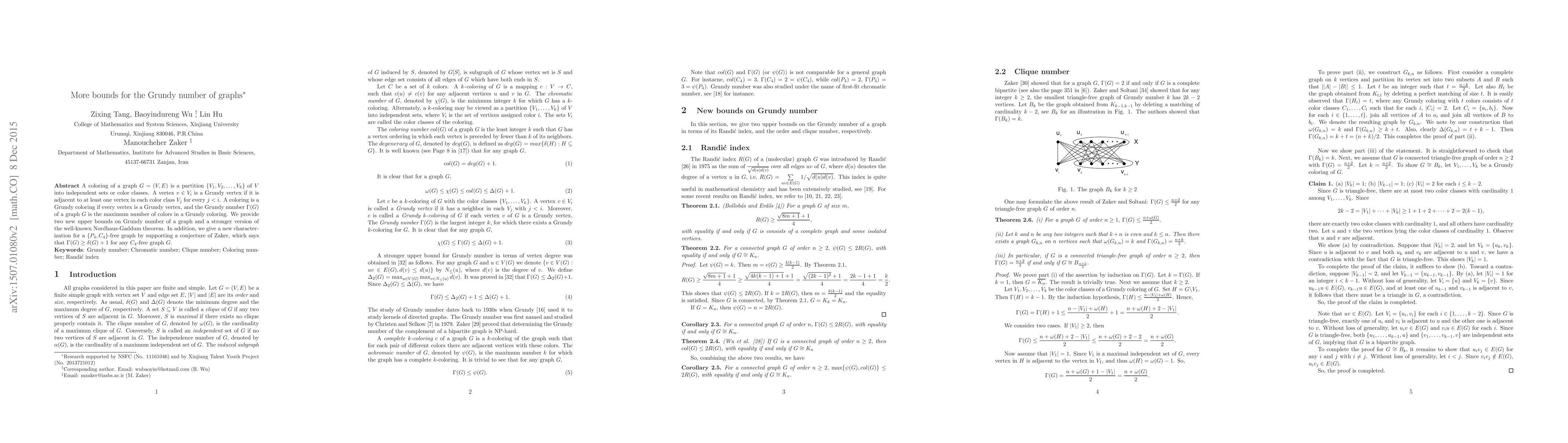This paper provides two new upper bounds for the Grundy number $\Gamma(G)$ of a graph and strengthens the Nordhaus-Gaddum theorem. It also supports a conjecture that $\Gamma(G) \geq \delta(G) + 1$ for any $C_4$-free graph $G$, characterizing $\{P_{4}, C_4\}$-free graphs.