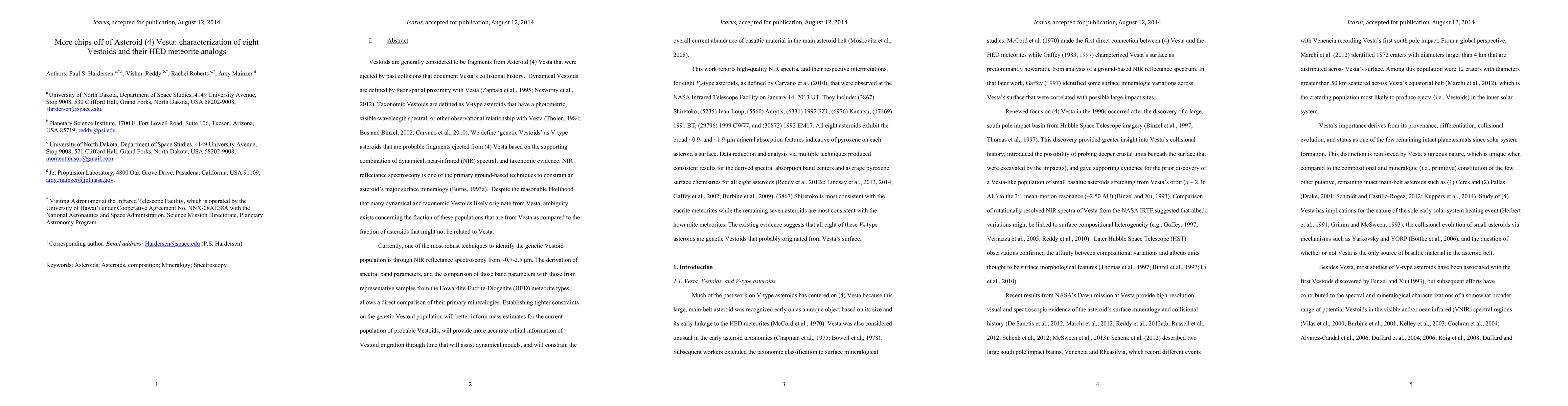 This work reports high quality NIR spectra, and their respective interpretations, for eight Vp type asteroids, as defined by Carvano et al. (2010), that were observed at the NASA Infrared Telescope Facility on January 14, 2013 UT. They include (3867) Shiretoko, (5235) Jean-Loup, (5560) Amytis, (6331) 1992 FZ1, (6976) Kanatsu, (17469) 1991 BT, (29796) 1999 CW77, and (30872) 1992 EM17. All eight asteroids exhibit the broad 0.9 and 1.9 micron mineral absorption features indicative of pyroxene on each asteroid's surface. Data reduction and analysis via multiple techniques produced consistent results for the derived spectral absorption band centers and average pyroxene surface chemistries for all eight asteroids (Reddy et al., 2012; Lindsay et al., 2013,2014; Gaffey et al., 2002; Burbine et al., 2009). (3867) Shiretoko is most consistent with the eucrite meteorites while the remaining seven asteroids are most consistent with the howardite meteorites. The existing evidence suggests that all eight of these Vp type asteroids are genetic Vestoids that probably originated from Vesta's surface.
