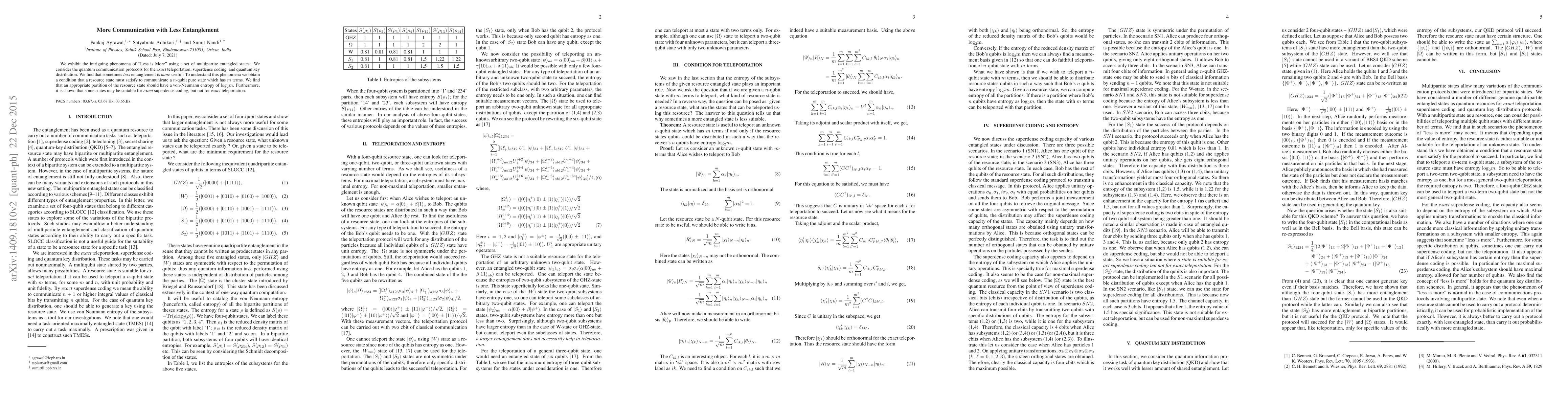 We exhibit the intriguing phenomena of "Less is More" using a set of multipartite entangled states. We consider the quantum communication protocols for the {\em exact} teleportation, superdense coding, and quantum key distribution. We find that sometimes {\em less} entanglement is {\em more} useful. To understand this phenomena we obtain a condition that a resource state must satisfy to communicate a $n$-qubit pure state with $m$ terms. We find that the an appropriate partition of the resource state should have a von-Neumann entropy of ${\rm log}_{2} m$. Furthermore, it is shown that some states may be suitable for exact superdense coding, but not for exact teleportation.