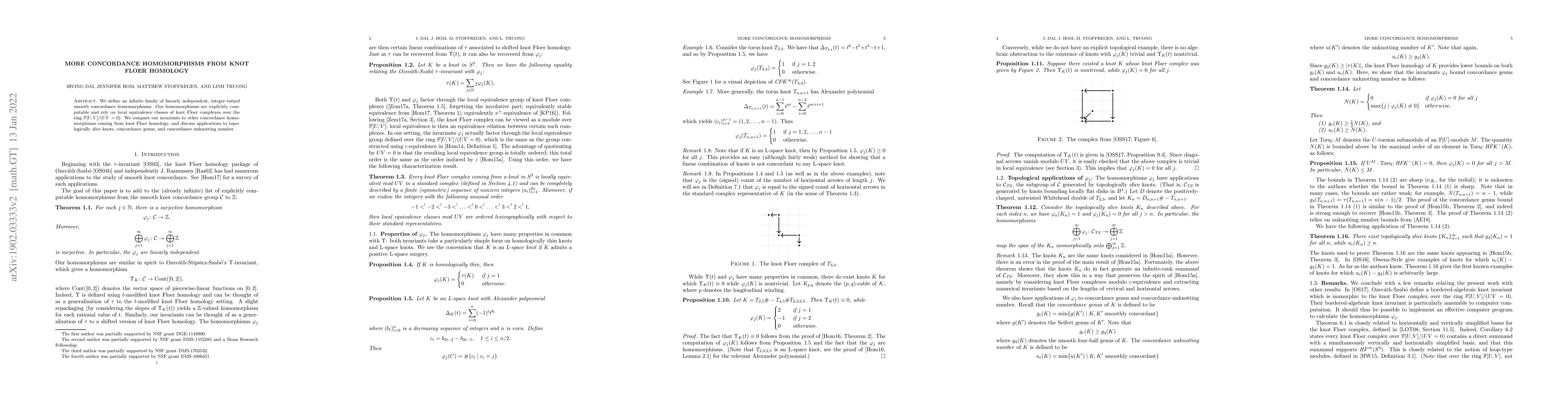 This paper introduces a new family of smooth concordance homomorphisms from knot Floer homology that are computationally explicit and rely on local equivalence classes. The study compares these homomorphisms to others and explores their applications to topologically slice knots, concordance genus, and concordance unknotting number.