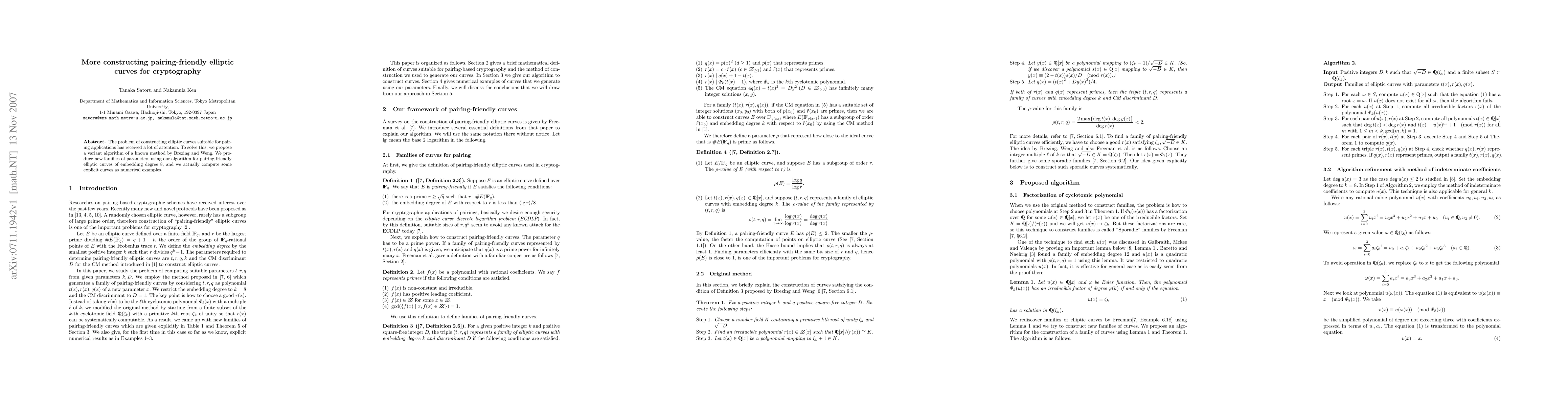 This paper proposes a modified algorithm based on Brezing and Weng's method to generate new families of parameters for pairing-friendly elliptic curves with an embedding degree of 8, and presents explicit examples of computed curves.