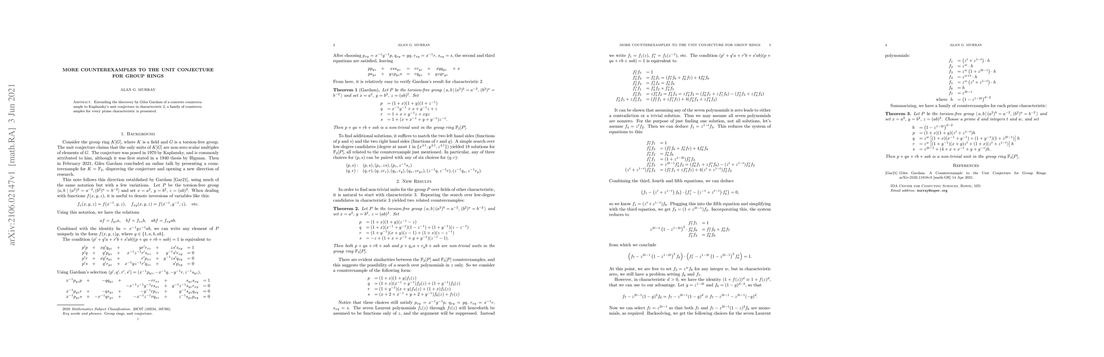 This paper extends Giles Gardam's counterexample to Kaplansky's unit conjecture, presenting a new family of counterexamples for every prime characteristic, thereby further challenging the conjecture's validity in group rings.