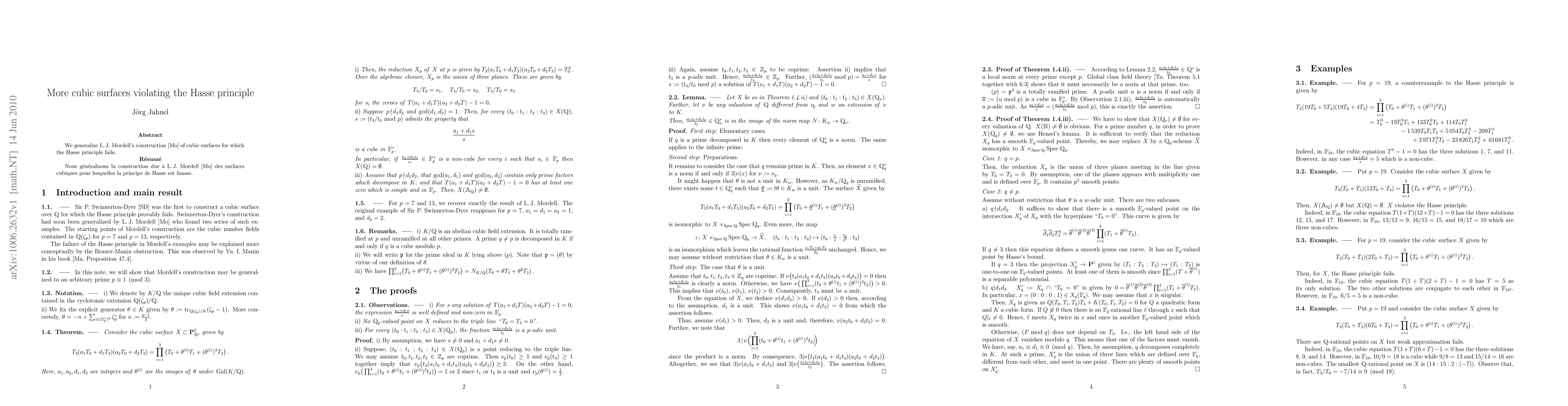 Summary: This paper extends Mordell's methodology to construct additional cubic surfaces that do not adhere to the Hasse principle, highlighting cases where local solutions do not extend to global solutions.