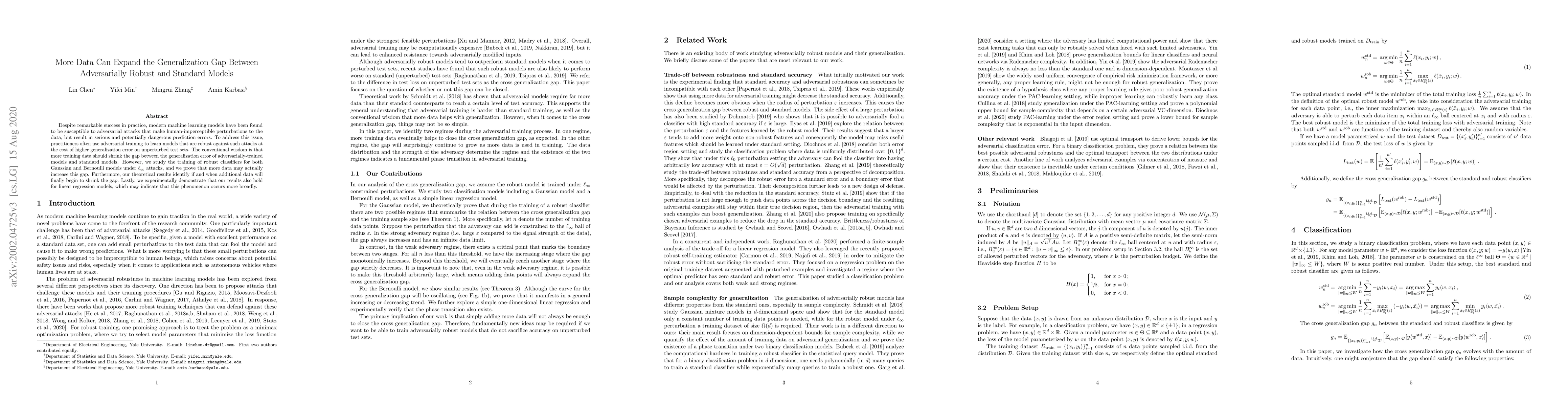 This paper investigates how additional training data affects the generalization gap between adversarially robust and standard machine learning models. Contrary to conventional wisdom, the study proves that more data can actually widen this gap, and identifies conditions under which data eventually helps to reduce it.