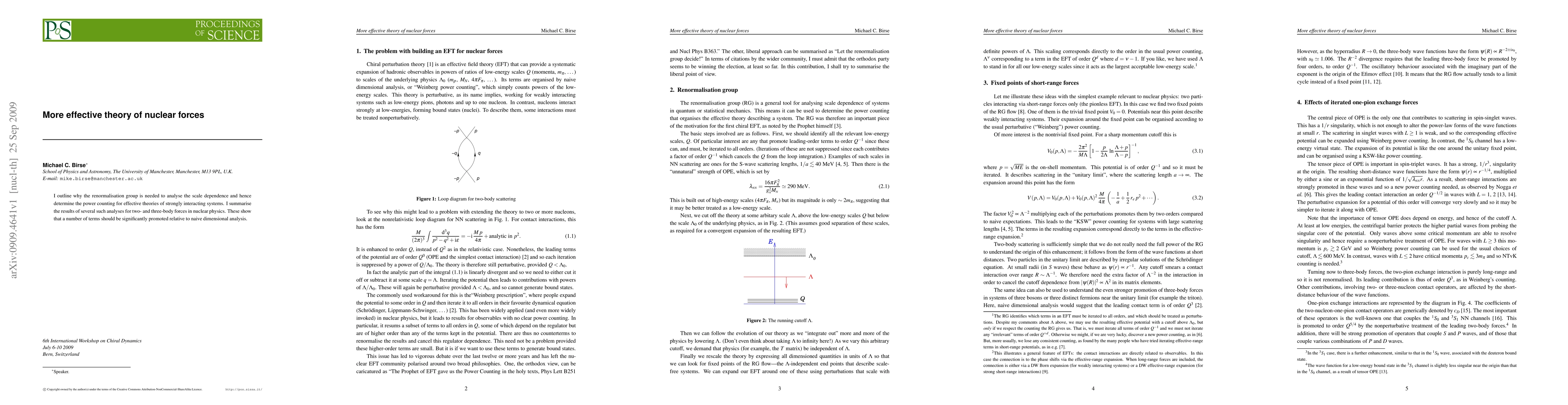 I outline why the renormalisation group is needed to analyse the scale dependence and hence determine the power counting for effective theories of strongly interacting systems. I summarise the results of several such analyses for two- and three-body forces in nuclear physics. These show that a number of terms should be significantly promoted relative to naive dimensional analysis.