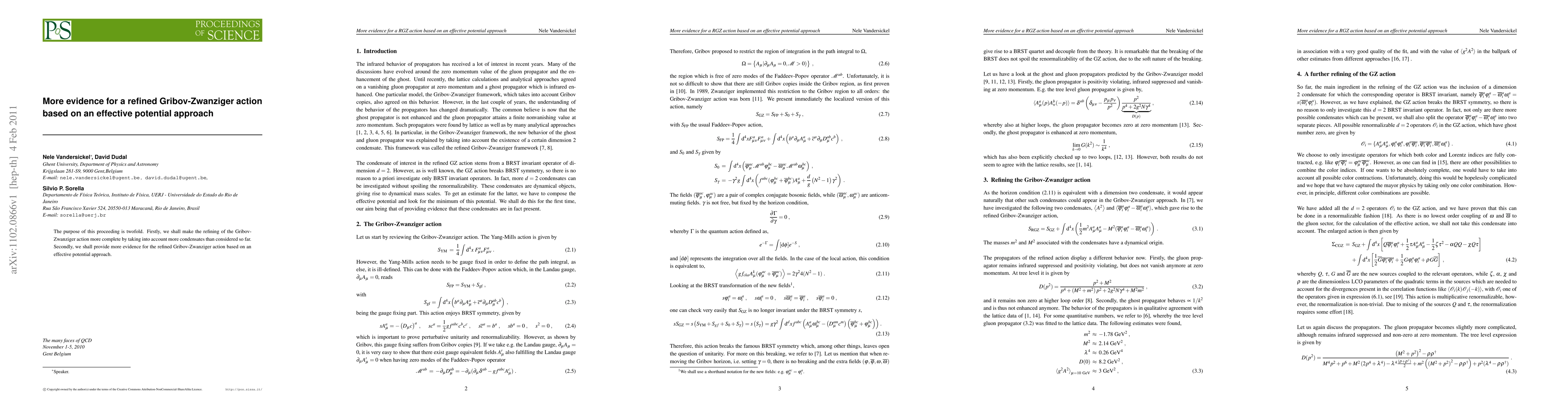 This paper refines the Gribov-Zwanziger action by incorporating additional condensates and provides further evidence for its validity through an effective potential approach. The study aims to enhance the completeness and accuracy of the refined action.