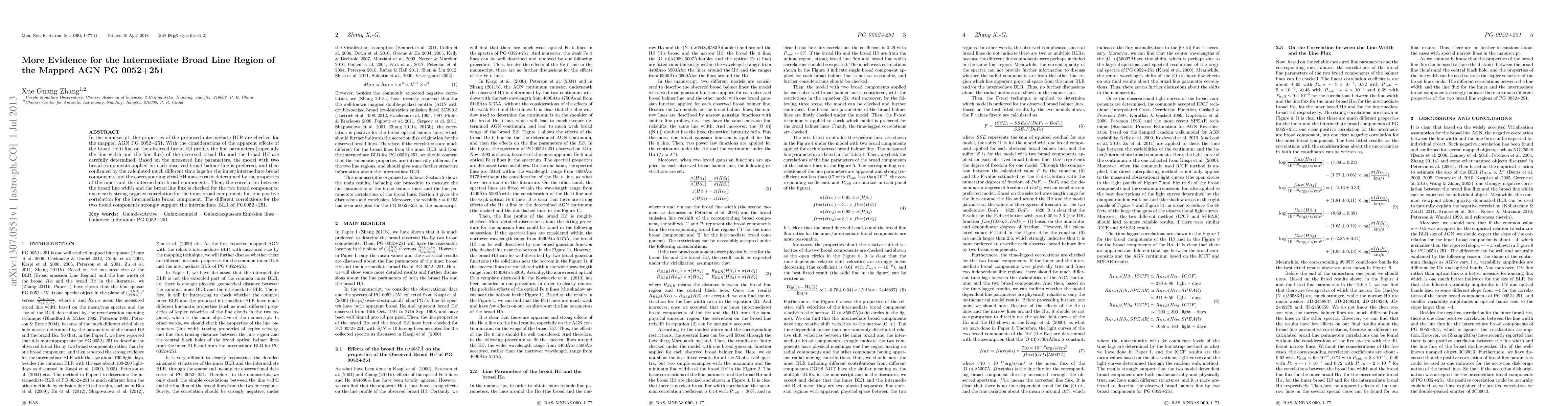 This paper investigates the properties of an intermediate broad line region (BLR) in the AGN PG 0052+251, confirming its existence through different correlations between line width and flux for inner and intermediate components. The study supports the model with two broad components for observed broad Hα and Hβ lines.