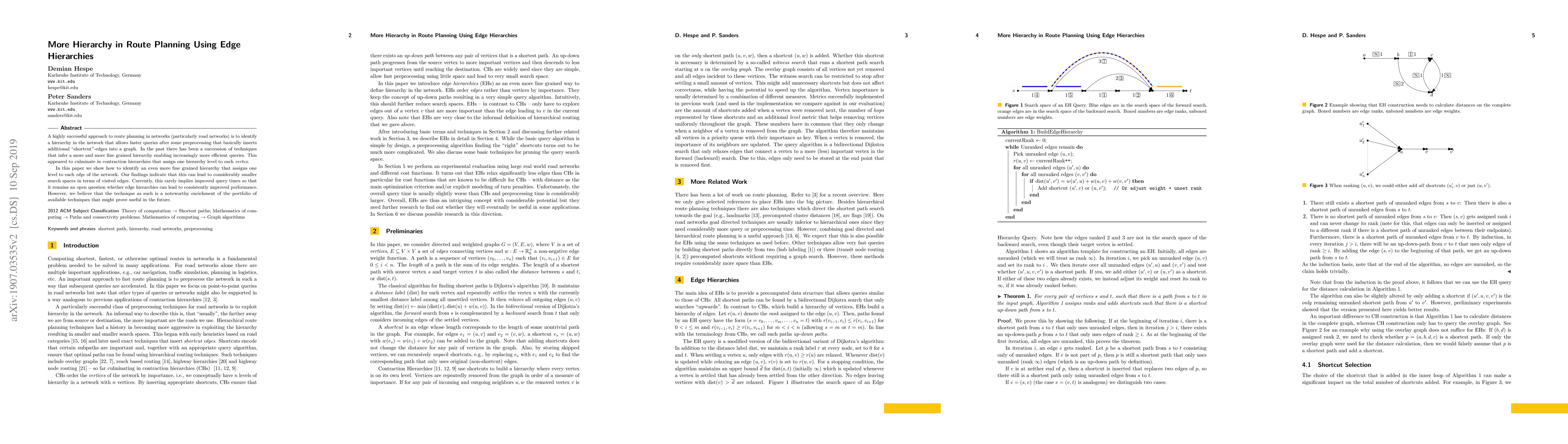 This paper proposes a novel edge hierarchy approach for route planning in networks, which assigns a unique hierarchy level to each edge, potentially reducing search spaces. While current results do not consistently improve query times, the technique is considered a valuable addition to existing methods and may offer future benefits.