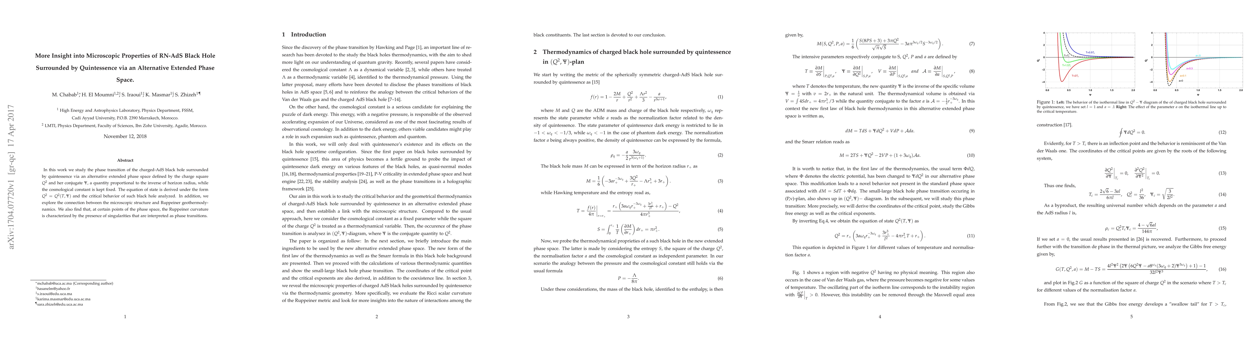 In this work we study the phase transition of the charged-AdS black hole surrounded by quintessence via an alternative extended phase space defined by the charge square $Q^2$ and her conjugate $\Psi$, a quantity proportional to the inverse of horizon radius, while the cosmological constant is kept fixed. The equation of state is derived under the form $Q^2=Q^2(T,\Psi)$ and the critical behavior of such black hole analyzed. In addition, we explore the connection between the microscopic structure and Ruppeiner geothermodynamics. We also find that, at certain points of the phase space, the Ruppeiner curvature is characterized by the presence of singularities that are interpreted as phase transitions.
