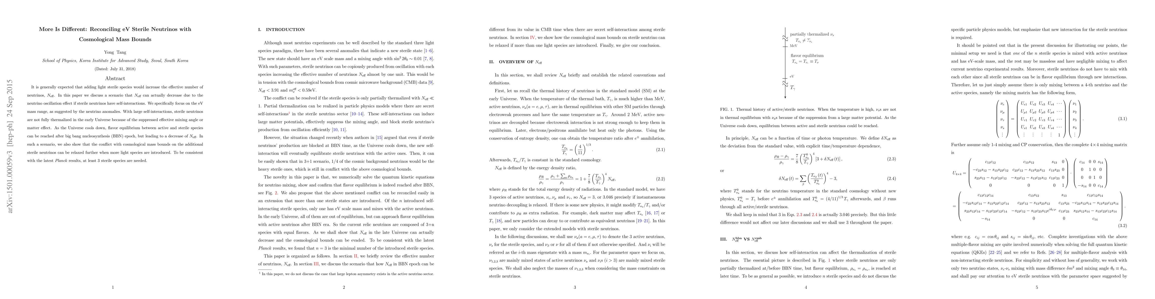 This paper explores how eV sterile neutrinos with self-interactions can decrease the effective number of neutrinos, $N_{eff}$, due to suppressed mixing angles, thus reconciling them with cosmological mass bounds. The scenario suggests that flavor equilibrium post-BBN can lead to a reduction in $N_{eff}$ and alleviates conflicts with cosmological constraints on additional sterile neutrinos.